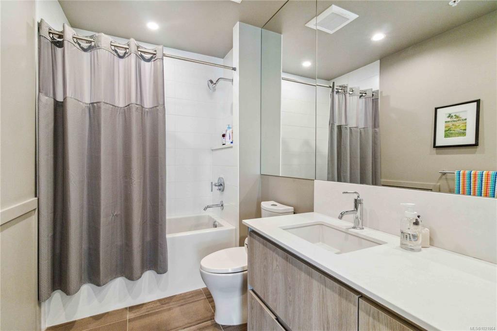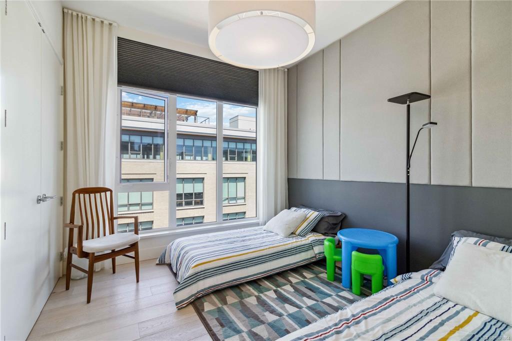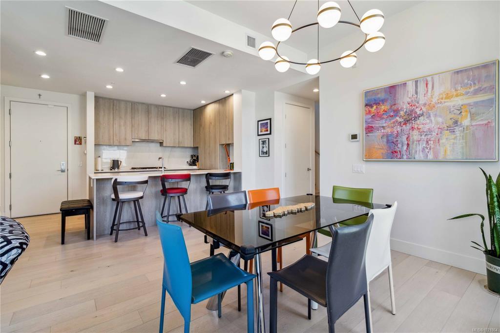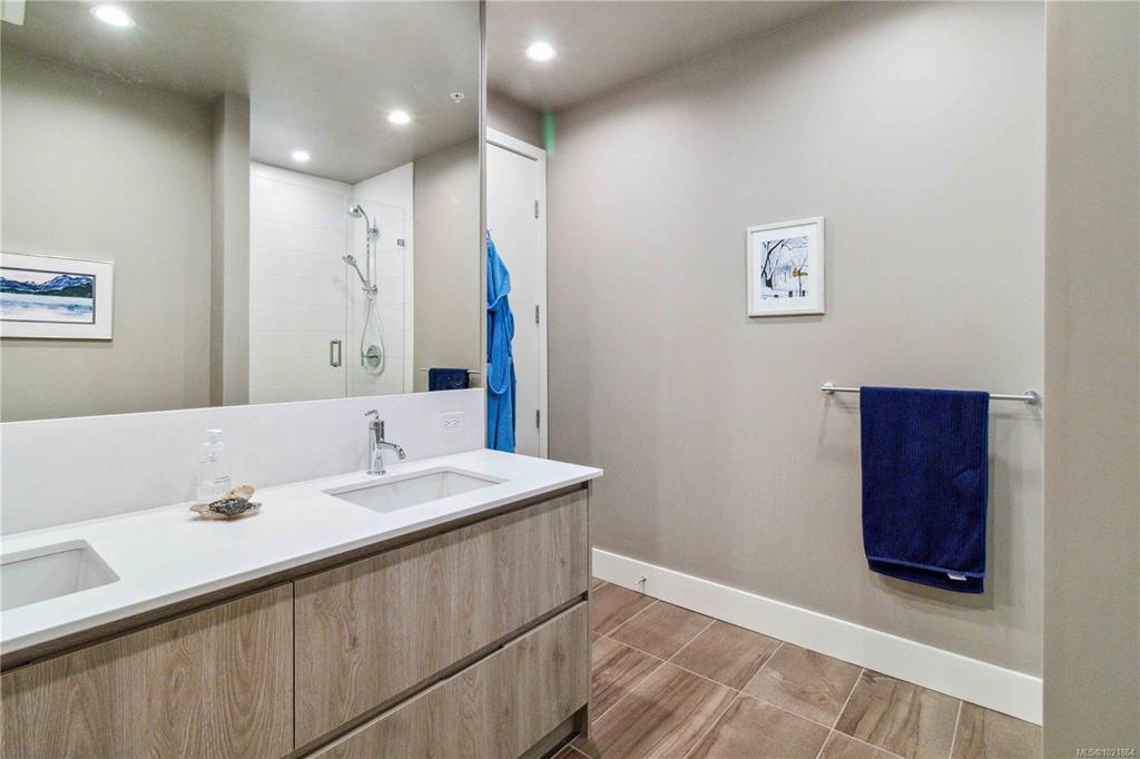 In the newly bustling upwardly mobile community of Esquimalt, blocks to Saxe Point Park and minutes to downtown Victoria Harbour and the Parliament buildings, you will find a treasure at The Douglas at Esquimalt Town Square. In addition to the 1178 sq. ft. rooftop patio which includes a gas bib, water, BBQ, and floating porcelain tile, this 2 bed 2 bath Penthouse home has over height 9’6” ceilings, and expansive windows. The interior features custom built-ins through-out, wide-plank oak engineered hardwood floors, premium appliance pkg (Fisher & Paykel, Bosch wall oven, gas range, and dishwasher), Benson custom cabinetry, and full-size LG washer & dryer. The living room features brick wall with electric f/p. NU-Heat in ensuite. Amenities include geothermal heating & cooling, bike room, elevator, 1 parking stall, 1 bike storage, 1 storage locker, Close to the ocean, parks, shopping, walking and biking trails, home doesn't get better than this!