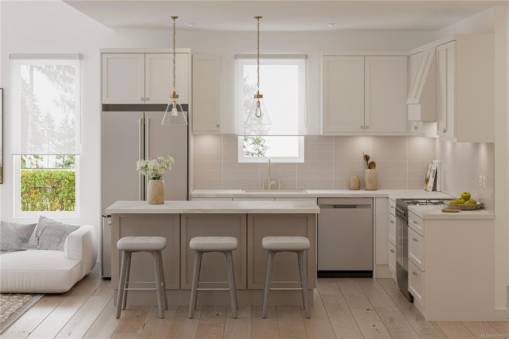 Another beautifully built new duplex by T-Bone Construction, designed by Ryan Hoyt, offering over 2,000 sq ft of bright, flexible living space. This 3-bedroom, 3-bath home features a desirable primary bedroom on the main level plus an upstairs rec room ideal for a home office, media room, or flex space. The open, airy layout showcases engineered hardwood flooring, custom cabinetry, stainless steel appliances, a cozy gas fireplace, and a heat pump for year-round comfort. Enjoy a sunny, south-facing front yard and a thoughtfully designed floor plan ideal for both entertaining and everyday living. Ideally located in Saanichton on the Saanich Peninsula, just steps to parks and amenities—perfect for aging in place or growing families.
