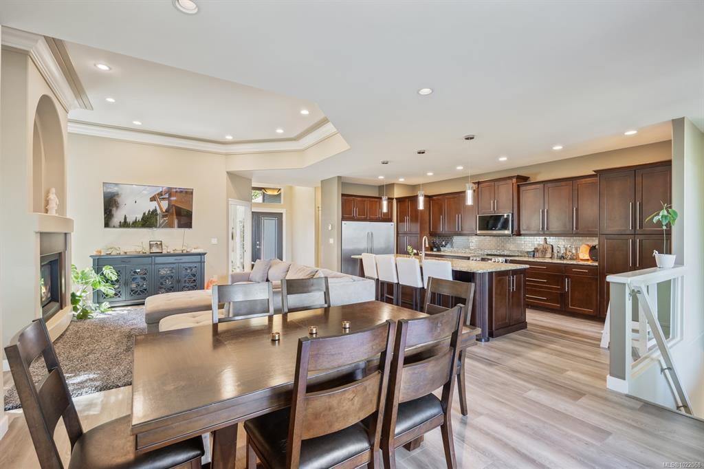 Priced below BC Assessment value. 3101 Klanawa Cres- a remarkable family home nestled in one of East Courtenay’s most desirable neighbourhoods. Beautiful mountain views & a private backyard set the backdrop for this property. At 3233 sqft, this home offers main-floor living & a walk-out basement. Throughout, extensive moldings, soaring ceilings, hardwood floors, granite counters, hot water OND, central vac, & irrigation system. The kitchen features stainless steel appliances, wood cabinetry, and generous workspace. The primary suite includes a soaker tub, walk-in shower, dual vanities, & a double-sided fireplace. For year-round comfort; a heat pump, & 3 gas fireplaces. The lower floor is an entertainer’s dream, rec room & theatre room, wet bar, and direct access to a covered patio. Included downstairs, 2 large bedrooms, & a storage room. The outdoor space has both sun & shade, lush landscaping, & a waterfall feature that ties it all together.