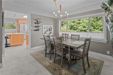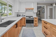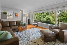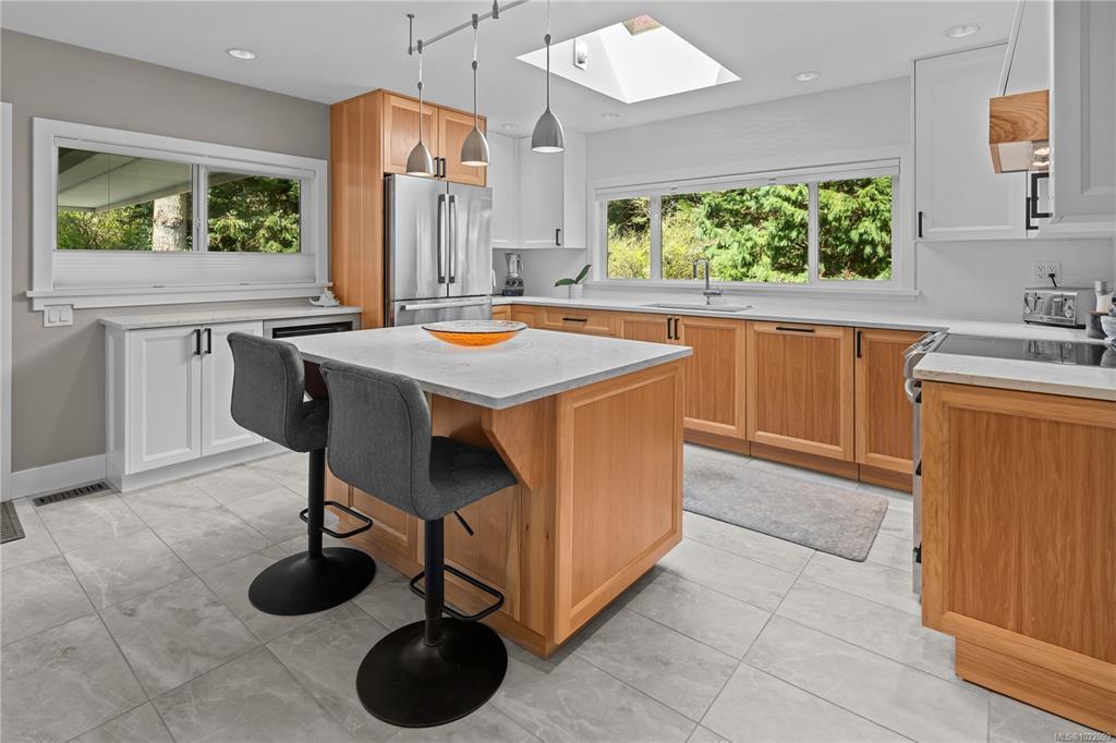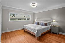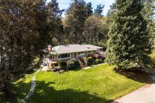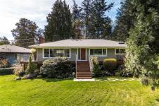 Tucked away on a quiet no-through road in Ten Mile Point, this beautifully renovated 1950s home sits on an 11,000+ sq ft lot, just steps to the ocean and parks. Thoughtfully updated throughout, it features a custom kitchen, hardwood floors, fir doors, energy efficient windows, 300 amp service, and a new furnace and heat pump. The main level offers a bright, open layout with a gas fireplace, forest views, and a natural flow connecting the kitchen, dining, and living areas. The spacious primary bedroom, two additional bedrooms, and a stylish full bath complete the main floor. Downstairs includes a large laundry room, an additional bedroom with ensuite, and a brand new one bedroom legal suite with its own entrance. The fully fenced backyard is a landscaped retreat with raised garden beds, curated plantings, and a large cedar deck with ocean glimpses. A rare offering in a prime location near beaches, trails, schools, and Cadboro Bay Village.