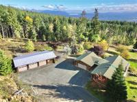 Private 60-acre estate featuring a beautiful log home with vaulted ceilings, expansive windows, and a warm, inviting atmosphere. Enjoy valley views and glimpses of the Cascades from the terraced deck overlooking the 50-ft pool, open pastureland, and rolling countryside. The land is highly usable, offering gently rolling pastures, cleared fields suited to agricultural or equestrian use, and a large barn/shop. Surrounded by Crown Land, the property provides rare privacy with direct access to established trail systems, waterfalls, ponds, and peaceful, park-like surroundings. The home is thoughtfully designed for main-level living with two bedrooms and two bathrooms. The walkout lower level adds three additional bedrooms (including a hidden room), a full bathroom, and a generous family area with direct outdoor access. Well suited for horses, small-scale farming, or those seeking a private rural retreat. A rare opportunity to own a truly special piece of acreage.**MORE PHOTOS COMING
