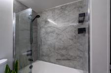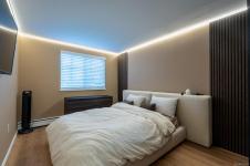 Enjoy custom cabinetry and modern appliances in the bright kitchen, plenty of storage throughout, plus a versatile in-unit storage room/den – ideal for a home office, pantry, or extra organization. The showcase bathroom features premium fixtures, elegant tiling, and spa-like comfort. To complete the vibe, there is custom lighting throughout the unit bringing a warm, modern ambiance.