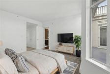 The 'Chelsea' is one of the more desirable addresses for higher end condos in Victoria. This One Bedroom + den, 2 bath unit has west facing exposure overlooking the beautiful private courtyard. Primary bedroom has 5 piece ensuite with separate shower and soaker tub. Den has built in Murphy bed and can easily be used for a bedroom/office combo. Built by Concert this Steel and concrete building makes for quiet neighbours. 2 pets allowed. Hardwood floors in main area and new carpet in bedroom. Well appointed kitchen with new fridge. Quartz countertops, higher end stainless steel appliances, Electric fireplace and nice sunny balcony for private outdoor moments. The building has an in house care taker, secure underground parking, separate storage locker, bike storage, gym, residents lounge and a well run strata. Walk score 97, Bike score 90, Transit score 91. Short walk to Cook Street Village, Downtown, Dallas Road. Very quiet area away from the high rise downtown buildings.