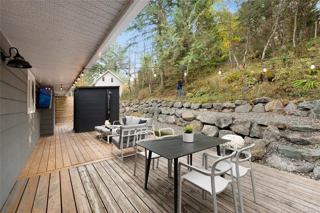 Stunning inside & out, this fully remodeled 5 bed, 3 bath 2500sqft home with in-law suite in Maple Bay offers the perfect blend of modern comfort & West Coast charm. Set on a beautifully landscaped, fully fenced & power-gated, 0.56acre, this property impresses from the moment you arrive with its freshly resurfaced driveway, new exterior paint, vinyl windows & newer roof. Main floor features hardwood floors, cozy wood stove & a heat pump for year-round comfort. The gorgeous new kitchen, spacious living room & dining area, allow for access to your front deck or the expansive rear deck—ideal for entertaining. Enjoy your private five-person sauna & outdoor shower surrounded by nature. The primary offers deck access & a stunning ensuite. Downstairs, a ground-level 2 bed in-law suite with no-step entry provides excellent flexibility, complete with a kitchen, 4pc bath, living space & separate laundry. Minutes to ocean access, trails, schools & the new hospital. This home has it all.