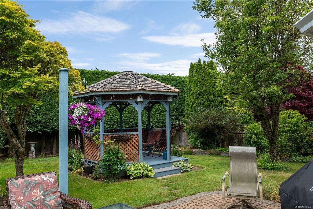 Set in one of North Nanaimo’s most desirable neighborhoods, this beautifully crafted home offers the perfect balance of luxury, comfort & privacy. Thoughtfully designed, this residence caters to families & professionals. Features vaulted living & dining room ceilings with custom pillar posts at the entrance create a bright & airy great room feel. The heart of the home boasts quartz countertops, gas stove & stainless-steel appliances & a large island. The large primary bedroom features a spa-like ensuite bathroom & a walk-in closet. The additional 3 bedrooms are generously sized ideal for children, guests, or a home office. The Private backyard Oasis is completely fenced and surrounded with established landscaping for unmatched privacy. Including a warm patio and gazebo for enjoyment, with room for a garden or hot tub. Ideally situated on a quiet street close to top-rated schools, shopping centers, beaches, parks & walking trails. All Data is Approximate and to be verified if important.