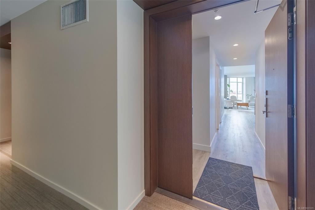 Bayview One sets the standard for upscale luxury living in Victoria, providing a paramount lifestyle in a premier location. Stunning steel & concrete build offering endless opportunity with a scenic walkway, fine dining & downtown core just a short stroll away. Inside the no expense spared development w/ concierge & state of the art security exemplify the comfort & privacy that comes with living here. This 2 bed/2 bath suite is impeccably finished w/ modern wide plank floors, floor to ceiling windows, designer kitchen & master ensuite w/ soaker tub. With an open floor plan to accommodate any scale of entertaining & amenities including: owner's lounge & bbq patio, conference space, business center, first class gym, hot tub, sauna, steam room, guest suite, car wash, pet wash and kayak storage. Professionally managed strata welcomes pets (no size restrictions), rentals, & all ages. This suite has 1 underground secure parking and 1 storage locker. The Bayview One stands alone!