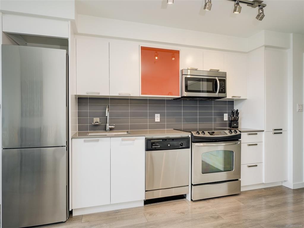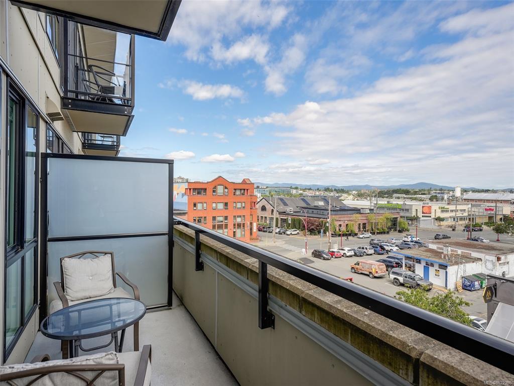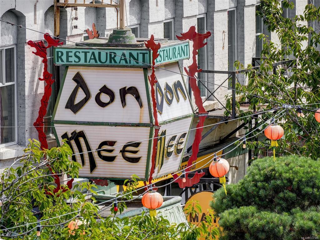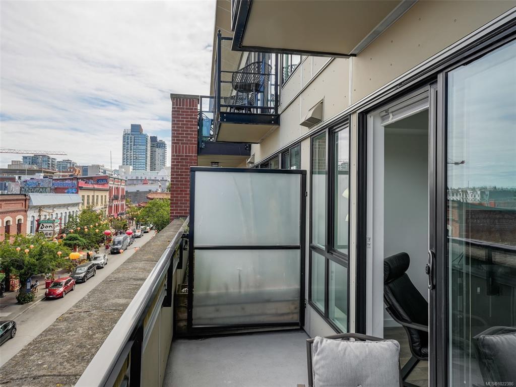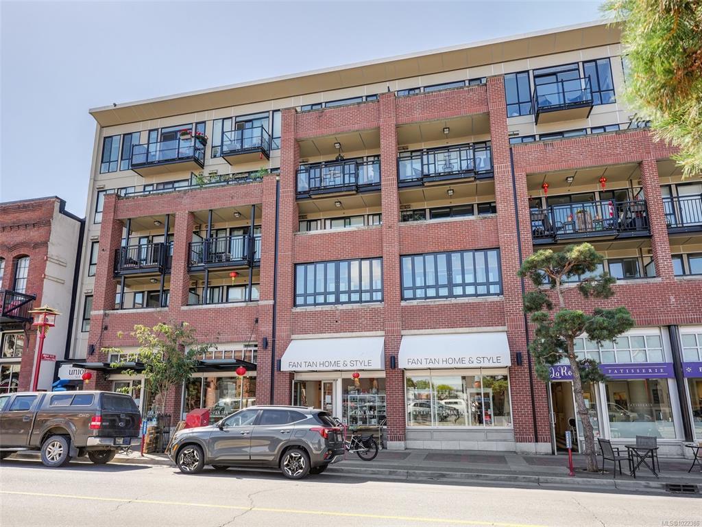 BEST VALUE IN THE BUILDING - LARGE BALCONY WITH MOUNTAIN VIEWS AND CHINA TOWN - UNDERGROUND PARKING - SEPARATE STORAGE. Situated in the heart of Chinatown this property is steps away from all amenities such as gyms, shopping, coffee shops, restaurants, the inner harbour and so much more. Boasting a modern aesthetic this condo includes an upscale kitchen with stainless steel appliances, quartz countertops, laminate flooring, floor to ceiling windows, New in-suite washer and dryer, ample storage space, 1 underground parking stall, exterior storage, and a generous private patio that looks over Chinatown. You don't want to miss taking a tour of this open concept living home.