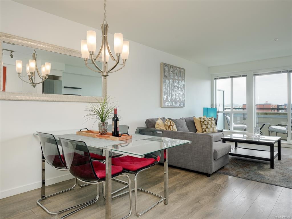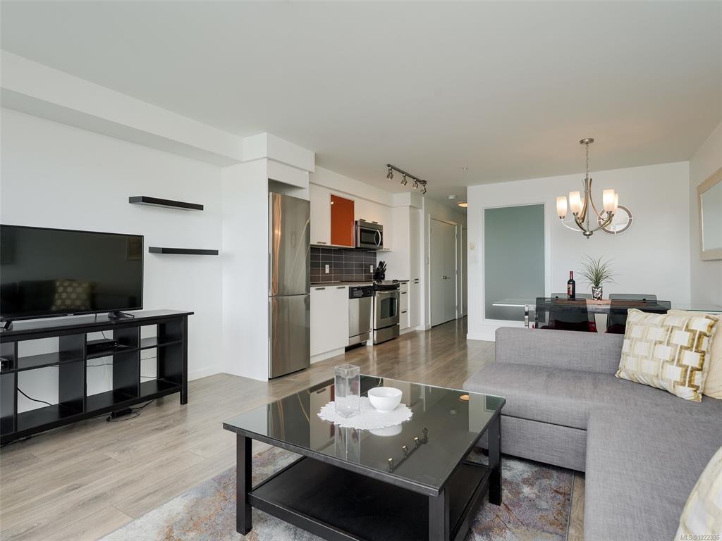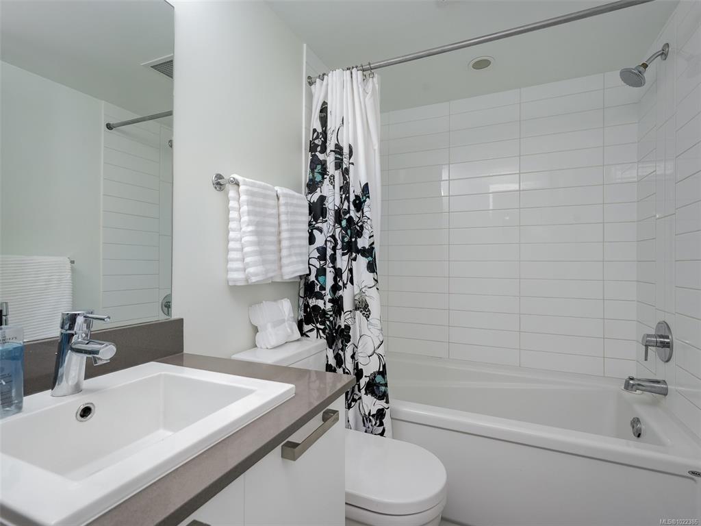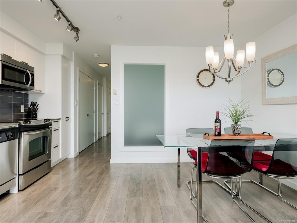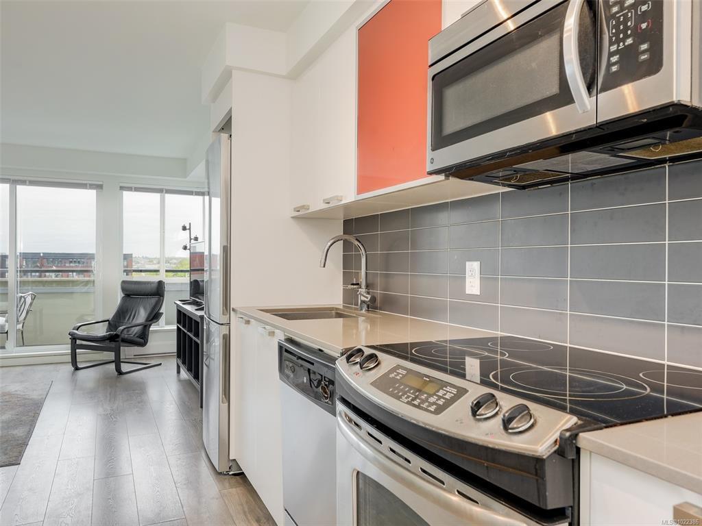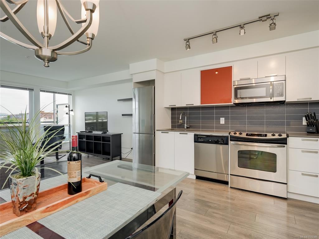 BEST VALUE IN THE BUILDING - LARGE BALCONY WITH MOUNTAIN VIEWS AND CHINA TOWN - UNDERGROUND PARKING - SEPARATE STORAGE. Situated in the heart of Chinatown this property is steps away from all amenities such as gyms, shopping, coffee shops, restaurants, the inner harbour and so much more. Boasting a modern aesthetic this condo includes an upscale kitchen with stainless steel appliances, quartz countertops, laminate flooring, floor to ceiling windows, New in-suite washer and dryer, ample storage space, 1 underground parking stall, exterior storage, and a generous private patio that looks over Chinatown. You don't want to miss taking a tour of this open concept living home.