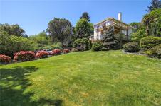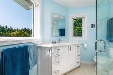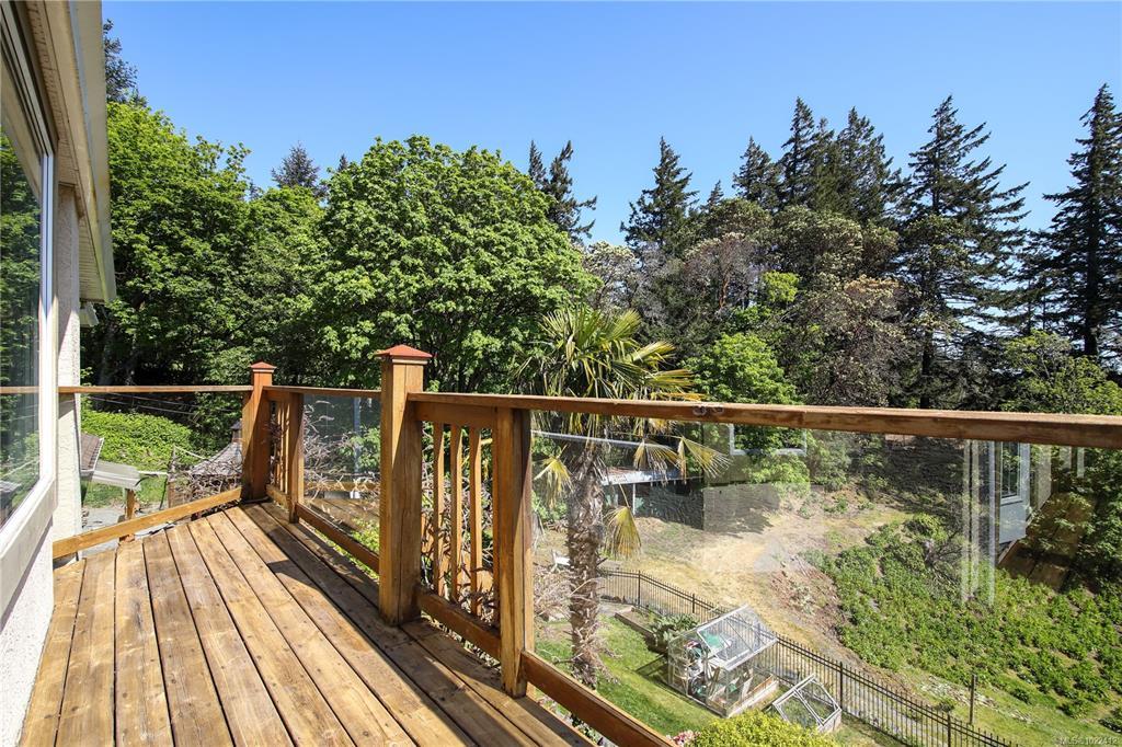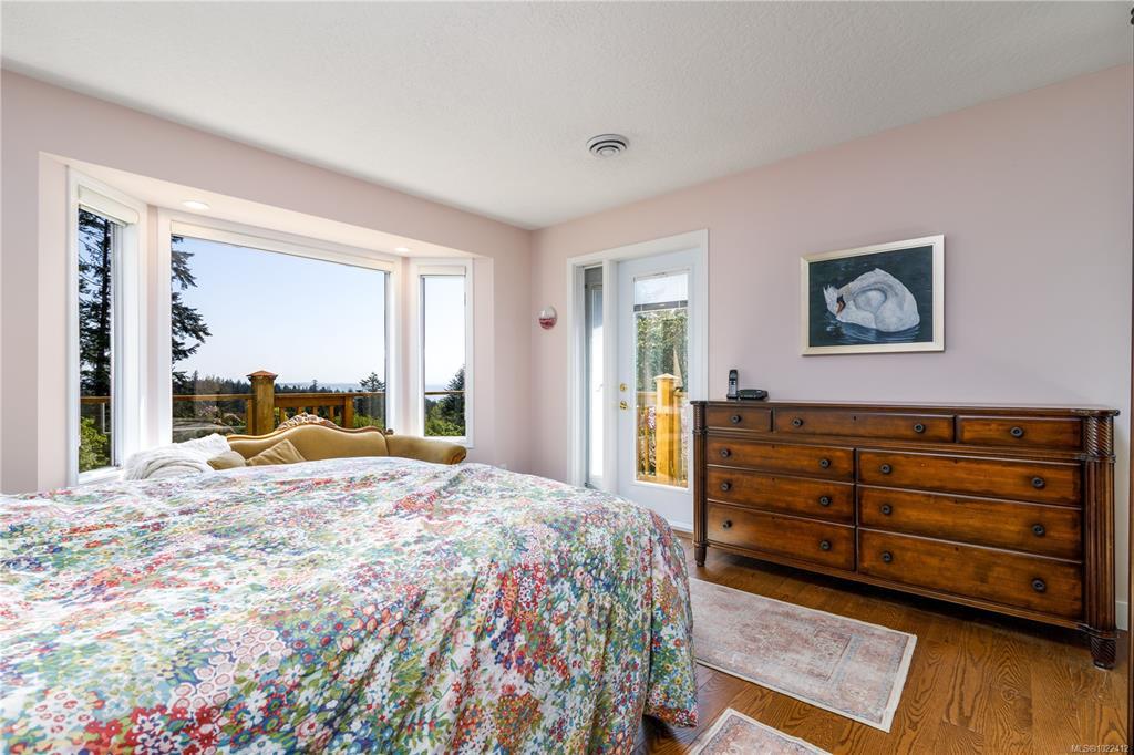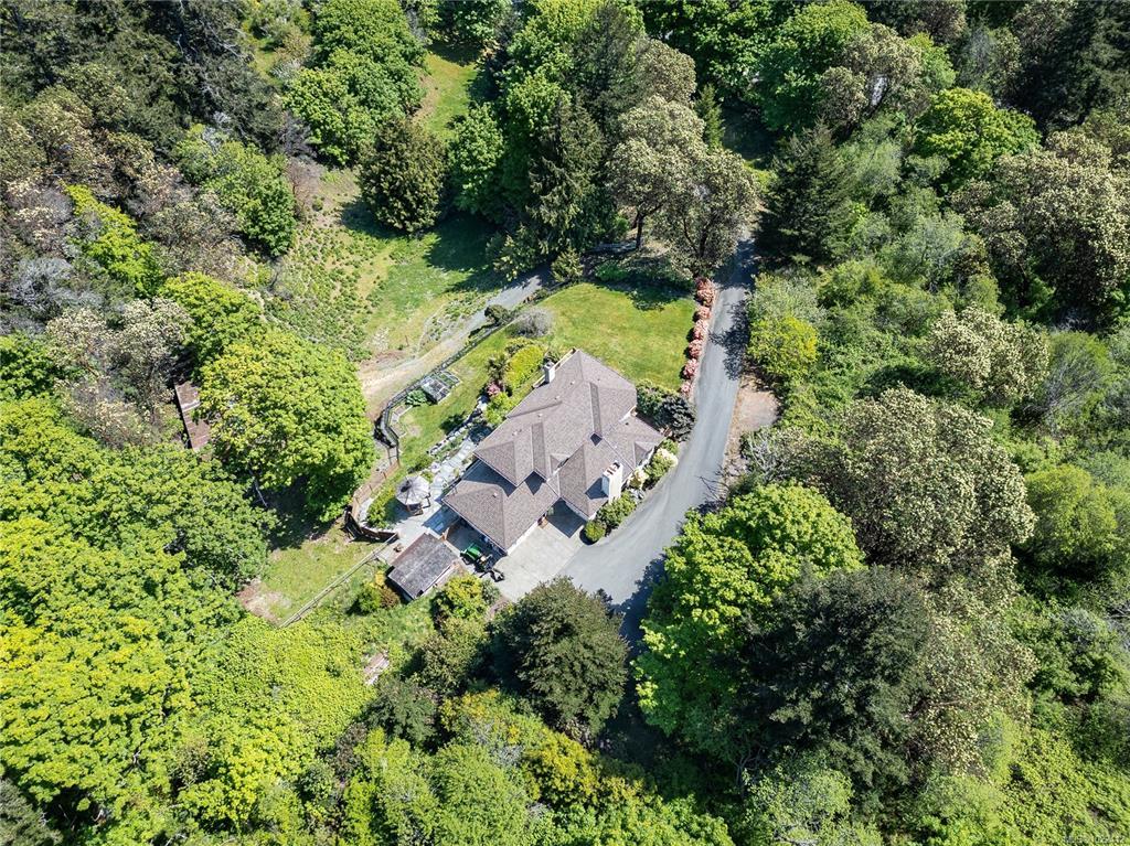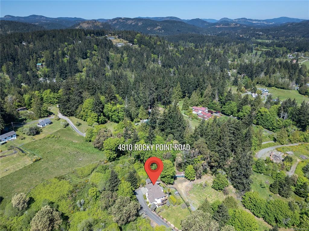 Nestled on nearly 2 acres with sweeping ocean, city, and Mt. Baker views, this updated 5-bedroom, 4-bath home offers over 3,200 sq. ft. of finished living space plus multiple outbuildings. The versatile layout includes a bright 2-bedroom in-law suite with its own entrance. The main floor features a modern kitchen with granite counters and premium appliances, dining area, living and family rooms, and a workshop. Upstairs, the primary suite offers a 3-piece ensuite and walk-in closet, plus two more bedrooms and a full bath. Outdoor amenities include landscaped grounds with a pond and waterfall, gazebo, horse barn, chicken coop, and RV parking. Comfort is ensured with a heat pump, propane heating, wood stove, and A/C. Enjoy Metchosin living with Witty’s Lagoon and Devonian Regional Parks minutes away, Westshore Town Centre nearby, and schools including WestMont, Hans Helgesen, Royal Bay Secondary, and Pearson College all within easy reach.