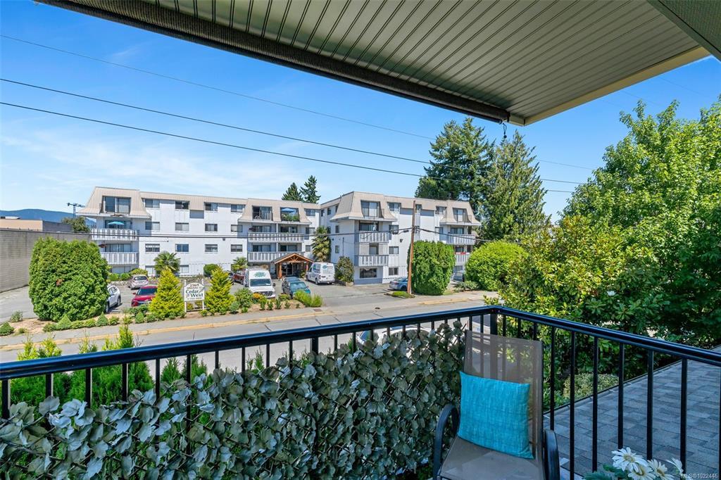 QUICK POSSESSION AVAILABLE!! MOVE IN READY!! Bright, spacious, and unbeatable value in the heart of Duncan! Just steps to shopping, restaurants, cafes, and everything downtown has to offer, this 2-bedroom, 2-bath corner unit is a rare find. One of just two units in the building with a built in electric fireplace and the only unit in the building with two bathrooms. Located in a well-cared-for building (2005) with an elevator, this second-floor home is flooded with natural light and offers exceptional privacy. You'll love the open-concept living/dining space, functional galley kitchen, and private balcony—perfect for your morning coffee or evening unwind. The generous 4-piece bathroom, in-suite laundry, and smart layout make everyday living easy. Pet-friendly (1 cat or 1 dog), no age or rental restrictions—ideal for first-time buyers, downsizers, or investors alike. Move-in ready and priced to sell—don’t miss your chance to own this fantastic home in a prime location!