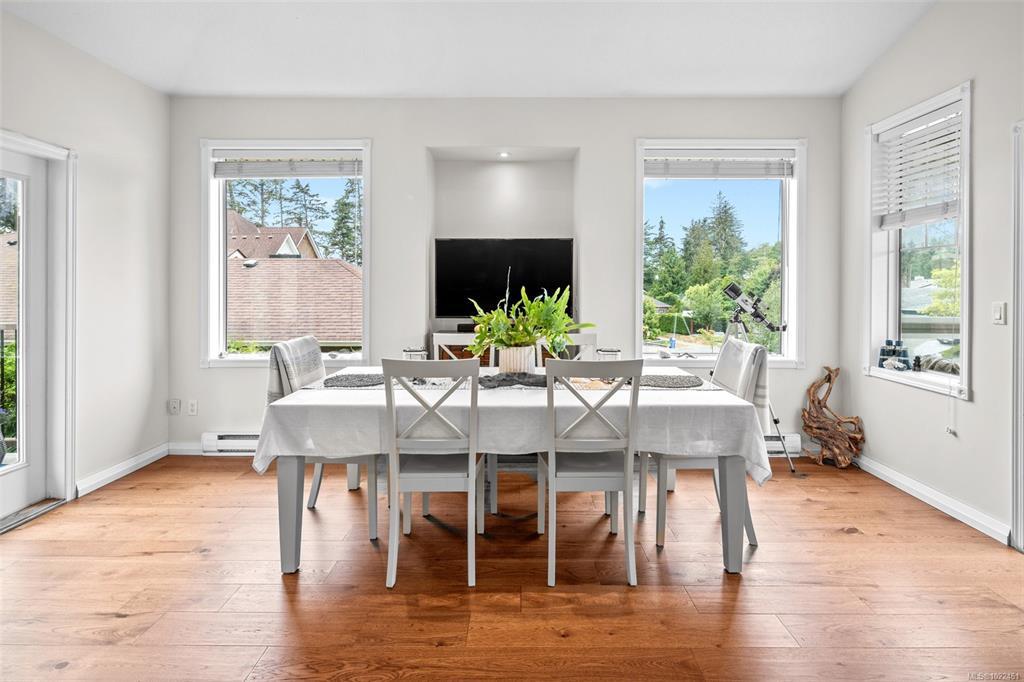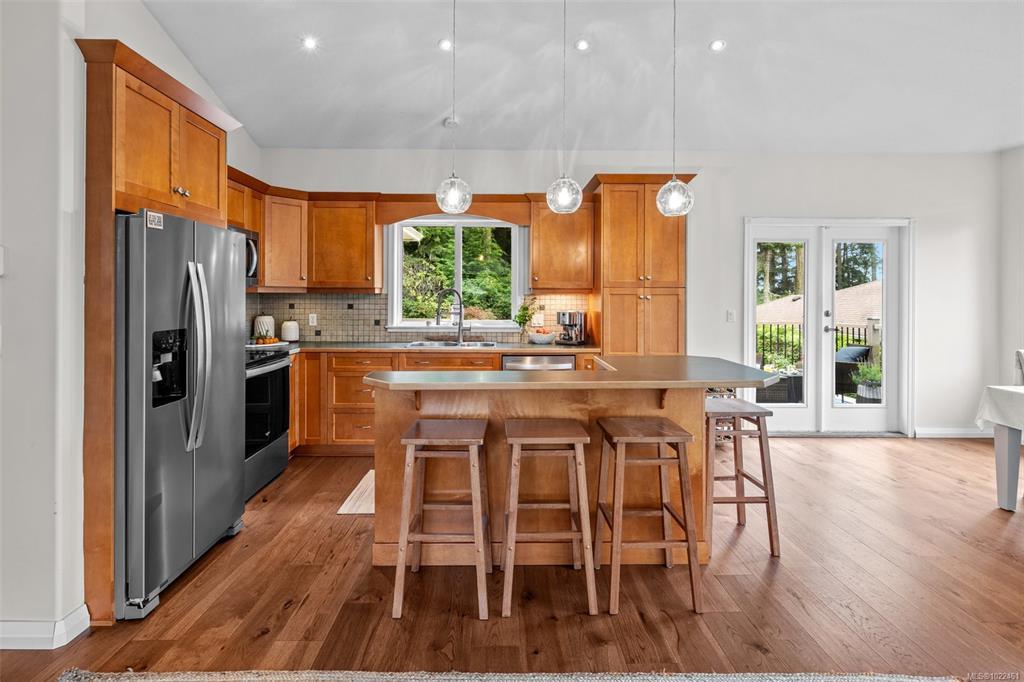 New beginnings await at Eagle Bluff Estates! This impressive five-bedroom, three-bathroom home stands on a peaceful cul-de-sac of fine homes and just a short stroll from viewpoints that overlook the Juan de Fuca Strait. From there, stairs descend to the iconic beaches at Eakin and Sooke Bluffs parks. This desirable neighbourhood is surrounded by scenic parkland. The property itself features a south-facing backyard that backs onto a private forest. Inside, sloped ceilings and shapely archways complement an open design. Take in views of the Pacific Ocean and Olympic Mountains from a lovely sunroom. Separate entrances make the lower floor a perfect guest suite or potential in-law suite. Living on the outskirts of Sooke guarantees a tranquil atmosphere, but schools and services are within easy reach. Eateries, groceries, and medical services are less than ten minutes by car. This location makes a great choice for anyone looking for that rare combination of quiet and convenience.