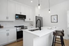 Welcome to Doctors Rd in beautiful Departure Bay—home to this stunning new 5-unit luxury townhome complex with sweeping ocean and mountain views. This is 1 of 4 two storey duplex units. Upstairs, the main living space is bright and open with views of Dep Bay, featuring engineered hardwood floors, a modern kitchen with stainless steel appliances, stone countertops, custom wood cabinetry, a cozy dining nook, a welcoming living room with an electric fireplace, a 2-piece powder room and access to a private patio w gas BBQ hook up. The spacious 11'x16' primary bedroom has a walk-in closet with custom high end shelving, and a sleek 4-piece ensuite boasting heated tile floors, a custom tiled shower and high end fixtures. The entry floor offers two additional beds, a stylish 4-piece bath, a laundry/storage room, and an attached 11'x25' garage w roughed in EV charger. Each unit has: high efficiency gas furnace, A/C, high end closet organizers, hardi plank exterior, landscaping Price plus GST.