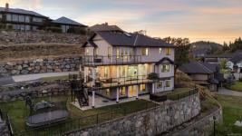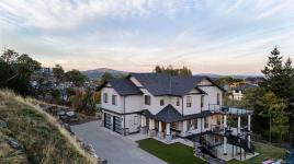 Welcome to 1414 Grand Forest Close, a custom-built family residence perched on Bear Mountain, showcasing sweeping ocean, city, and mountain vistas from every principal room. The entry level presents a chef’s kitchen with a quartz sit-up island, built-in coffee station, and a dedicated dining room highlighted by a bespoke wine wall. The living room opens seamlessly to a wraparound patio, perfect for entertaining or unwinding against the backdrop of stunning views. The primary suite features a lavish 5-piece ensuite, walk-in closet, cozy fireplace, and a private top-floor deck. Additional bedrooms include custom built-in closets and a shared 5-piece Jack-and-Jill bathroom. The lower level impresses with a spacious media room, stylish bar with beverage fridge, guest bedroom, and a versatile office. Walk out to a landscaped backyard from the covered patio. Topping it off is a private 2-BEDROOM SUITE above the garage with its own entry and extra parking.