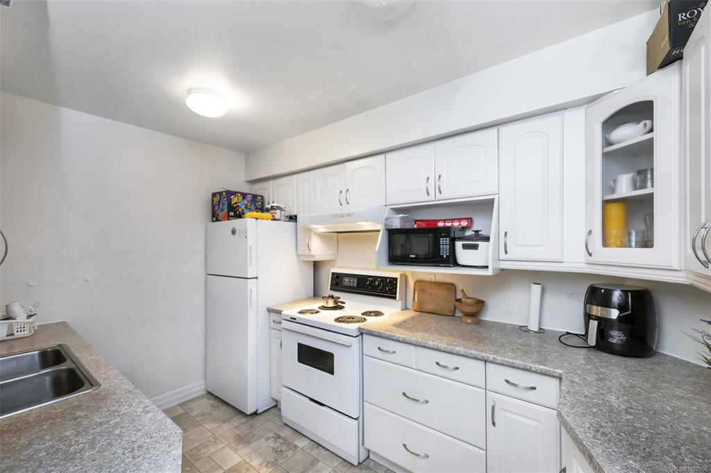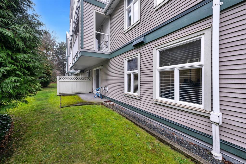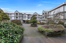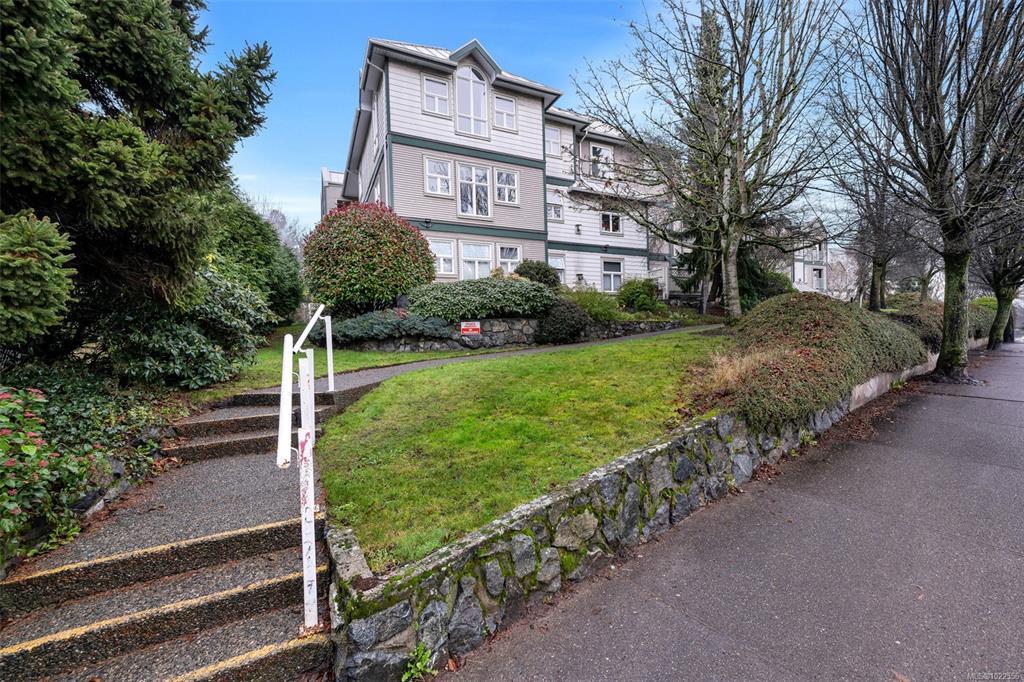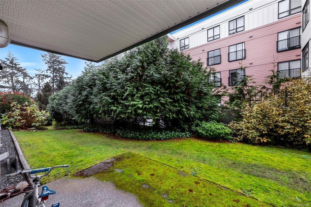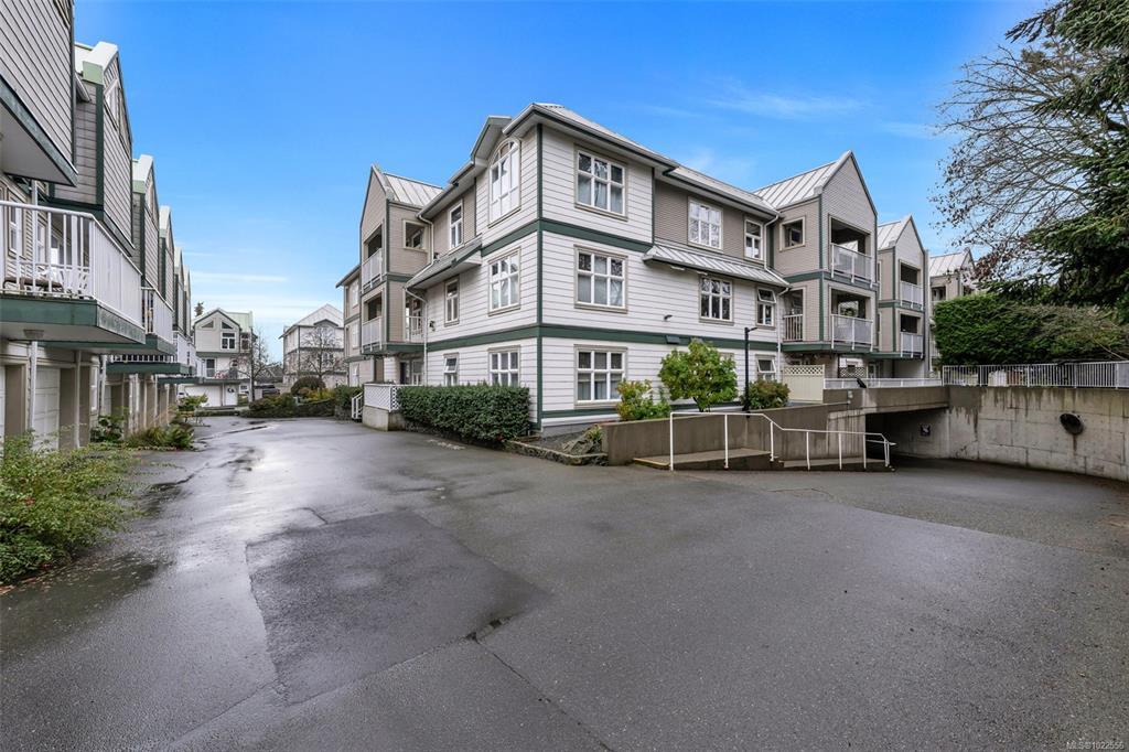 Welcome to this impeccably maintained GROUND-FLOOR 2-bedroom, 2-bathroom gem in "Carrington Court." This bright unit offers modern comfort and incredible investment potential in a high-demand location. The primary suite features a walk-through closet and private ensuite, while the living room offers a cozy gas fireplace (included in strata fees). Enjoy the sun on your private walkout patio—PERFECT FOR PET OWNERS. This wheelchair-accessible home includes in-suite laundry, secured underground parking, and storage. Meticulously landscaped and steps from the Selkirk Waterfront, Gorge Waterway, and Galloping Goose Trail, you are only minutes from downtown Victoria. This is a prime opportunity for a turnkey rental or an unbeatable urban lifestyle.