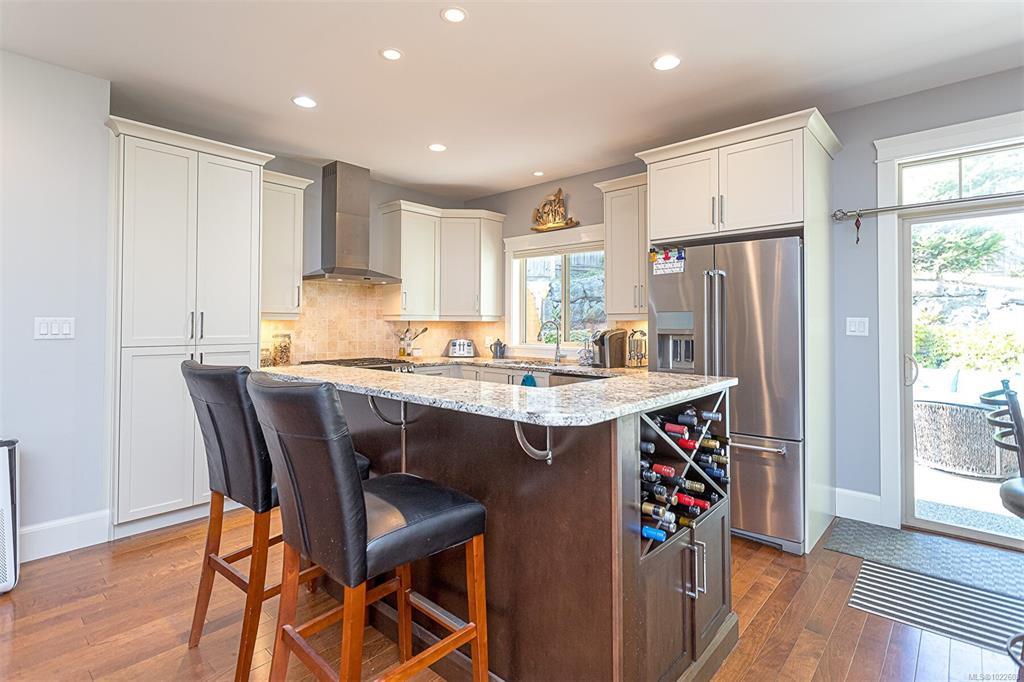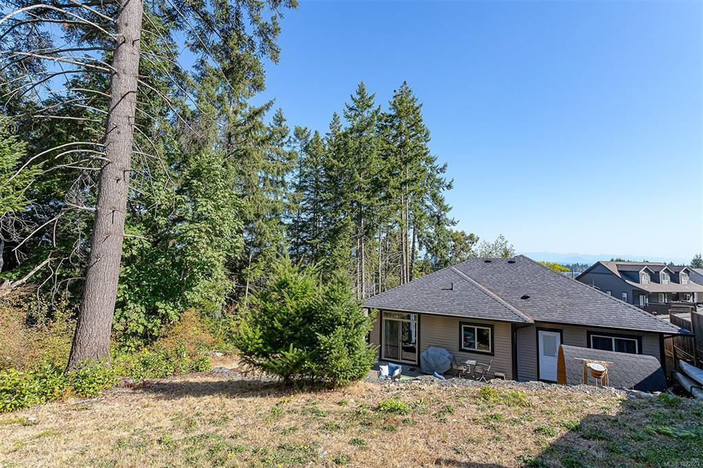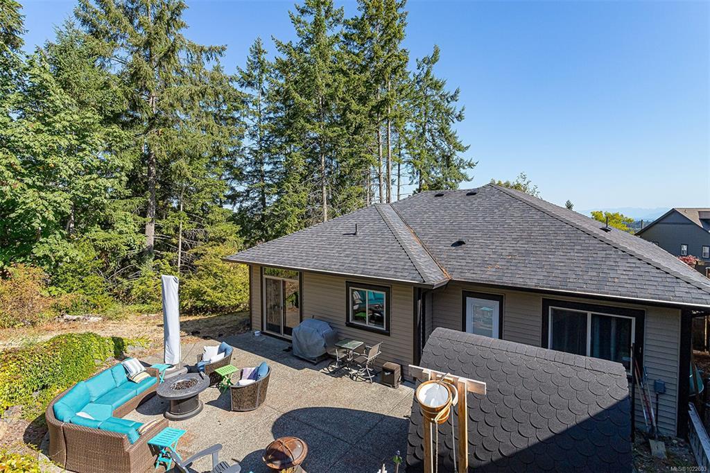 Experience the best of Nanaimo living in this beautifully maintained, move-in-ready 2015 rancher in the sought-after University District. This home offers 1,606 sq ft of single-level living on a peaceful corner lot, ideal for downsizers and those craving an easy-care lifestyle. The open-concept layout features a great room with high ceilings and a cozy gas fireplace. The gourmet kitchen is a showstopper, boasting granite counters, a large island, and ample cabinetry. The primary suite is a true retreat with a luxurious 5-piece ensuite and a walk-in closet. The exceptional outdoor space is the signature feature: Step out to your expansive 800+ sq ft custom patio and enjoy winding down in your built-in sauna—a rare luxury. Additional highlights include a double garage with extra-high ceilings (perfect for storage/workshop), a generous crawlspace, and low-maintenance landscaping. With quick access to Westwood Lake trails and a peek-a-boo ocean view, this is a truly special home.