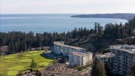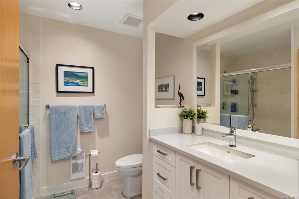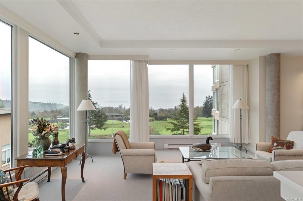 Experience luxury coastal living in this spacious 2-bed, 2-bath concrete and steel condo overlooking Cordova Bay Golf Course, with stunning ocean and mountain views from Haro Strait to Mt. Baker. The open-concept living and dining areas feature floor-to-ceiling windows that fill the home with natural light. The updated kitchen offers new stainless-steel appliances, granite counters, and a stylish backsplash, while a gas fireplace in the living room adds warmth and charm. Both bathrooms have been beautifully updated with acrylic counters tile flooring, and modern fixtures. The spacious primary suite includes a walk-in closet with custom built-ins. Additional features include new plush carpet, fresh paint, in-suite laundry, ample storage, a separate locker, and secured underground parking with EV charger. This well-managed building welcomes pets and rentals with no age restrictions. Steps to beaches, trails, shops, and minutes to Victoria, the airport, and BC ferries. A rare opportunity!