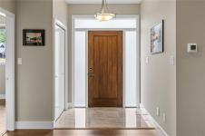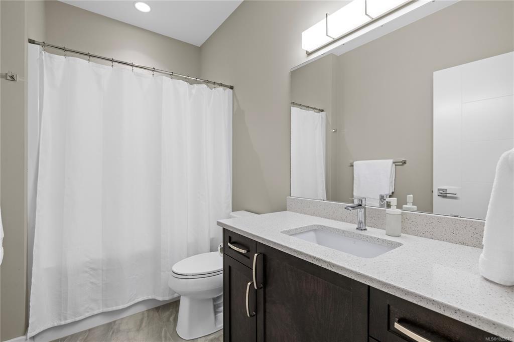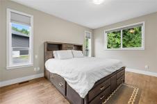 Still under new home warranty, this lovely 3 bed, 2 bath rancher sits on a quiet cut de sac in Ladysmith. Enter a bright entrance with a bedroom to the right, then walk further in to the great room where living, dining and style meet: large windows, Quartz counter top, white subway tile backsplash, and cupboards galore. Down the hallway is another bedroom, laundry, and 4 piece bath. The primary is located at the back of the house, with a full walk-in closet and five piece ensuite with soaker tub.