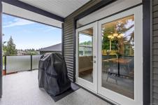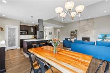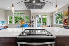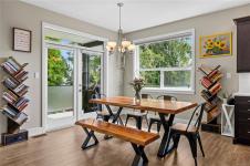 There is a wrap around deck with privacy glass off the dining space, that looks onto the backyard that boasts mature trees, and a covered area for winter BBQ's.