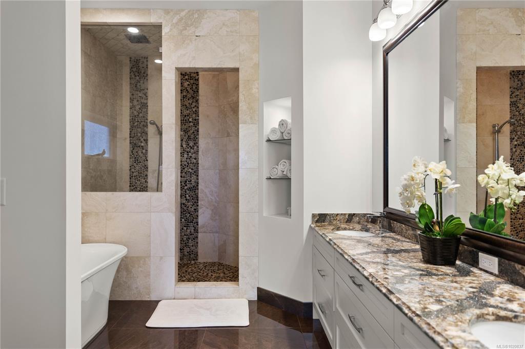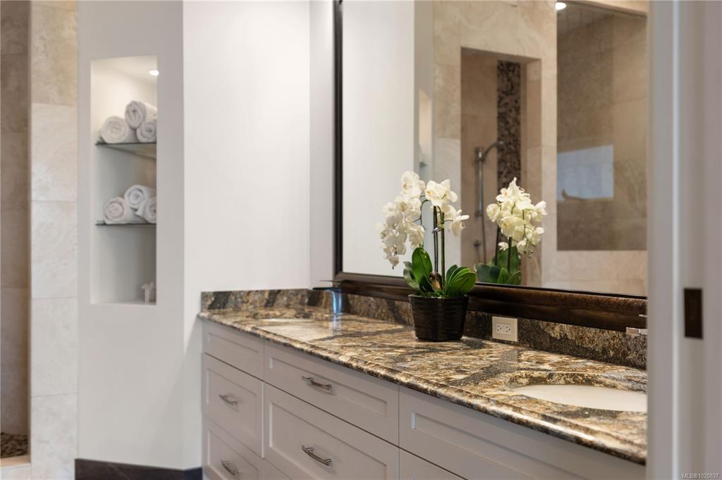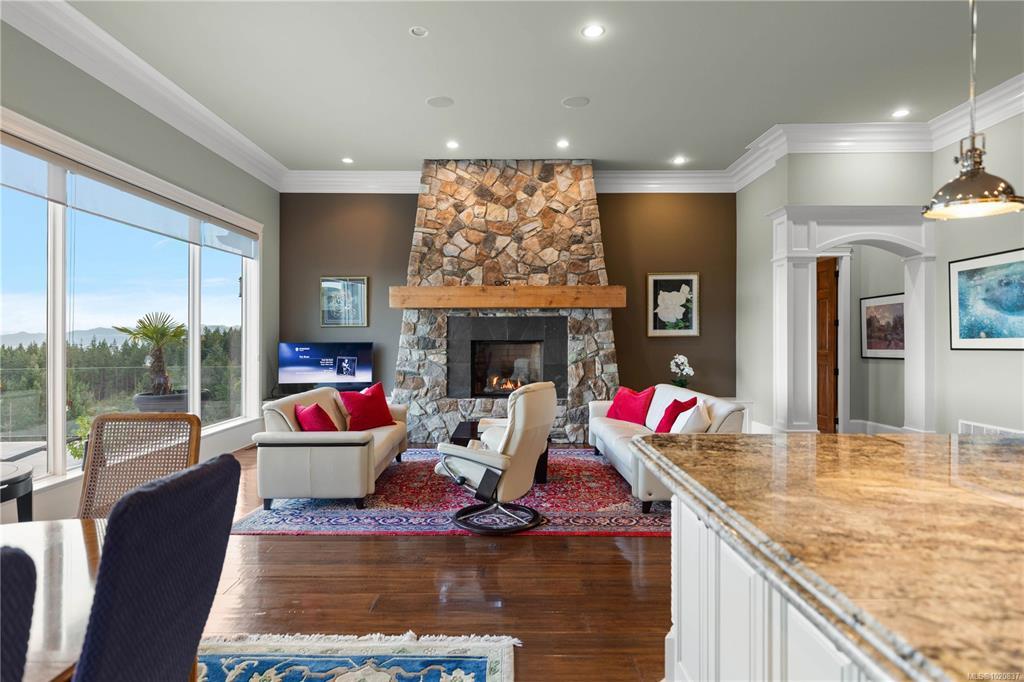 Offering timeless luxury perched on coveted Spirit Ridge, this classic Bear Mountain home is enriched with deep tones, stunning archways, high ceilings and impressive mountain and ocean views! The heart of the home, the kitchen, offers a striking oversized granite island, walkthrough butler’s pantry, abundance of Hobson Woodwork cabinetry, walk-in pantry and high-end appliances – Viking & Blue Star. Open-concept living and dining room open up to the expansive, SW facing, partly covered deck! Main-level primary suite offers the perfect serene escape with the additional nature views, a spacious walk-in closet and spa-like ensuite. Retreat to the lower level featuring home theatre room, perfect for a family movie night, wet bar with ample storage, walk-out patio and 2 generously sized guest bedrooms - A floorplan that lends itself to multi-generational families, teenagers (with separation), or simply a family looking for a fantastic home.