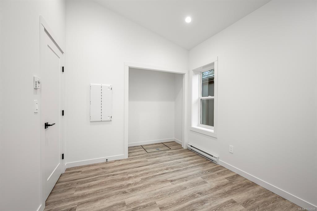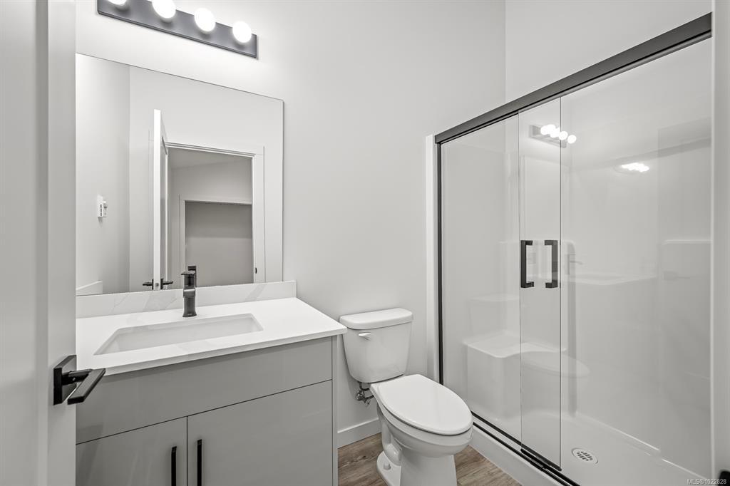 New and Improved, the Northern Flicker is a stunning 2 bed 2 bath home offering incredible value. Spanning over 1,200 sq ft, you'll be impressed with the spacious layout, contemporary design and high end finishings. Turn-key ready with full appliance package, quartz countertops, heat pump, modern kitchen cabinets, large island and well appointed laundry room with storage, sink and quartz countertops. The open concept kitchen-dining-living area is light and airy with soaring 12 ft vaulted ceilings and 7 windows for plenty of natural light. You'll love the large gas fireplace for efficient and cozy heat. The show stopper is the 14' x 10' covered rear patio, perfect for relaxing with family and entertaining friends. With a metal frame, metal siding and metal roof, maintenance Is minimal. Notice the thick 12' walls, high energy performance and low running costs. GST applies. The Flats of Cumberland is a brand new community of 56 beautiful homes.