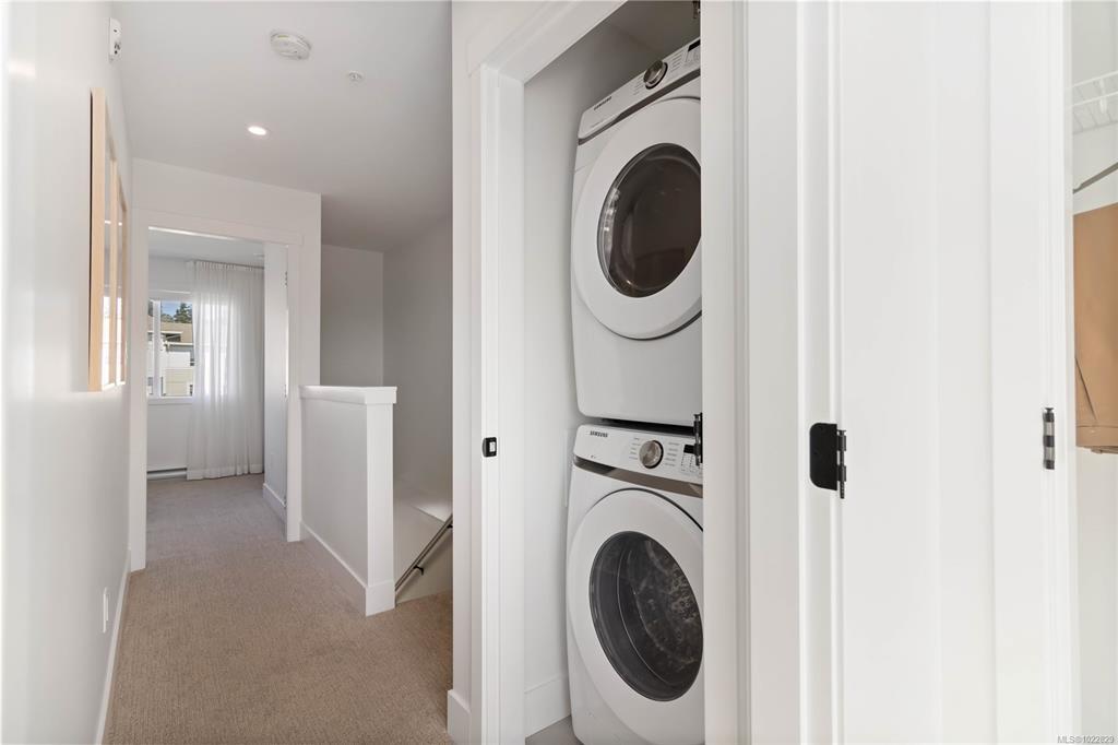 Ultimate in West Coast living with this exceptional move-in ready 2-bed, 2.5-bath townhome with 1,121sqft of meticulously appointed luxury space that defies expectation. Premium features include engineered stone countertops, sophisticated 2-tone millwork, & chef-inspired gourmet kitchen complete with modern stainless-steel appliances & energy-efficient induction cooking. Spa-inspired primary ensuite showcases a frameless glass shower & contemporary floating vanity, while soaring 9' ceilings & expansive private balcony enhance the home's bright, sophisticated ambiance. You'll enjoy immediate access to pristine beaches, picturesque coastal walking trails, & refined neighbourhood amenities—delivering a serene waterfront lifestyle & urban convenience. Impeccably finished & ready for immediate occupancy, unparalleled luxury coastal living. Visit the Home Store at 394 Tradewinds Ave, Sat–Thurs, 12–4 pm. All measurements are approx. Price does not include GST. Photos are from a similar unit.