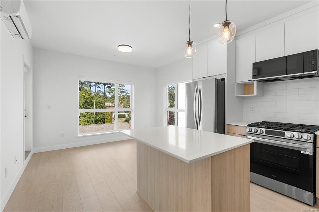 Welcome to Millstream Residences, built by renowned developer Landvision. This functional and thoughtfully designed 2 bedroom corner unit home offers 668 sqft of living space as well as a cozy 52 sqft patio, perfect to enjoy during the warm summer months. The open living space features oversized windows that flood the space with tons of natural light, durable neutral flooring and matte black hardware and details throughout that anchor the home. The kitchen features SS LG appliances, quartz countertops and island and two-tone cabinetry with ample room for storage. The building features a large outdoor space where you can connect with your neighbours and enjoy the green spaces, seating, BBQ’s and playground. Centrally located in the heart of Langford, you are just minutes from amazing amenities and recreation, schools, hiking trails, parks and lakes.