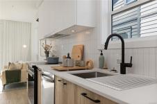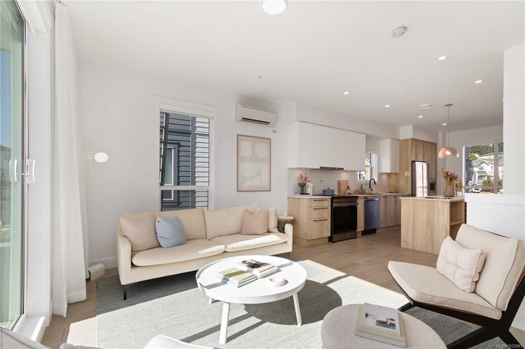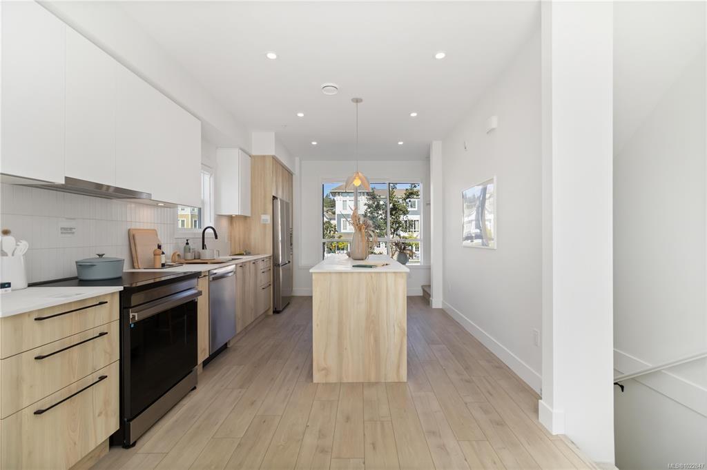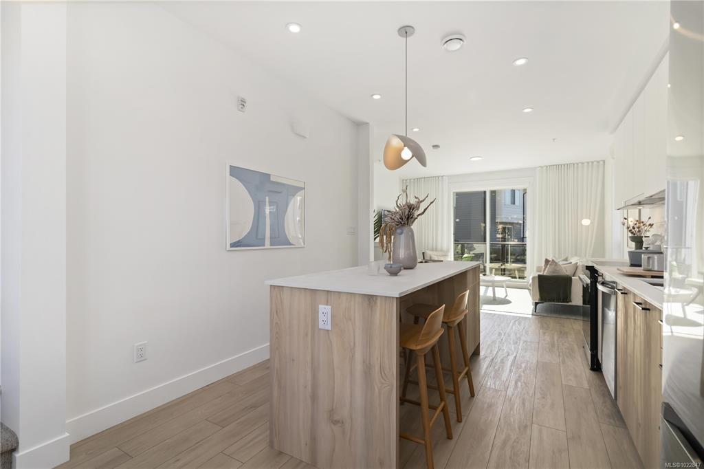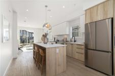 Immerse yourself in refined West Coast elegance with this exquisite 2-bedroom, 2.5-bath townhome spanning 1,121 sqft of artfully curated living space. Every detail speaks of sophistication—from engineered stone countertops & bespoke two-tone millwork to a chef’s kitchen featuring modern stainless-steel appliances & energy-conscious induction cooking. Primary suite is a sanctuary of indulgence, boasting a frameless glass shower & floating vanity. Soaring 9-ft ceilings & an expansive balcony invite natural light, creating an airy, gallery-like ambience. Perfectly positioned within the community, this residence offers seamless access to pristine beaches, scenic trails, and vibrant local amenities—delivering a harmonious blend of coastal serenity and urban sophistication. Please visit the Home Store at 394 Tradewinds Ave, open Sat–Thurs, 12–4 pm. Measurements approximate; GST additional. Photography showcases the actual home.