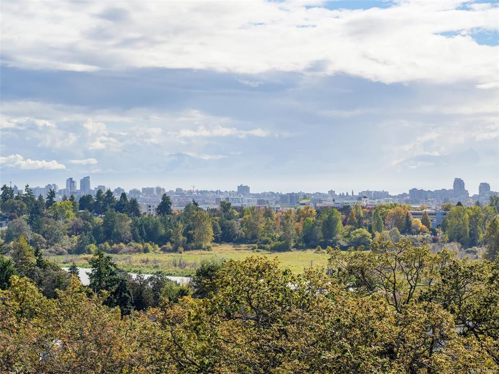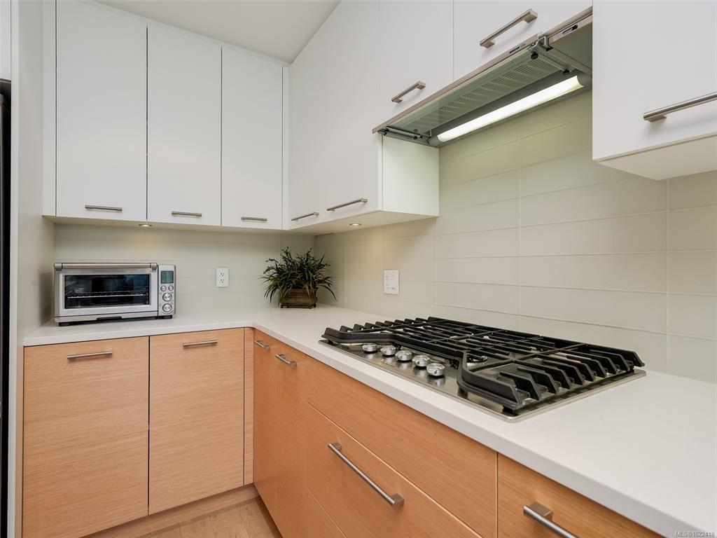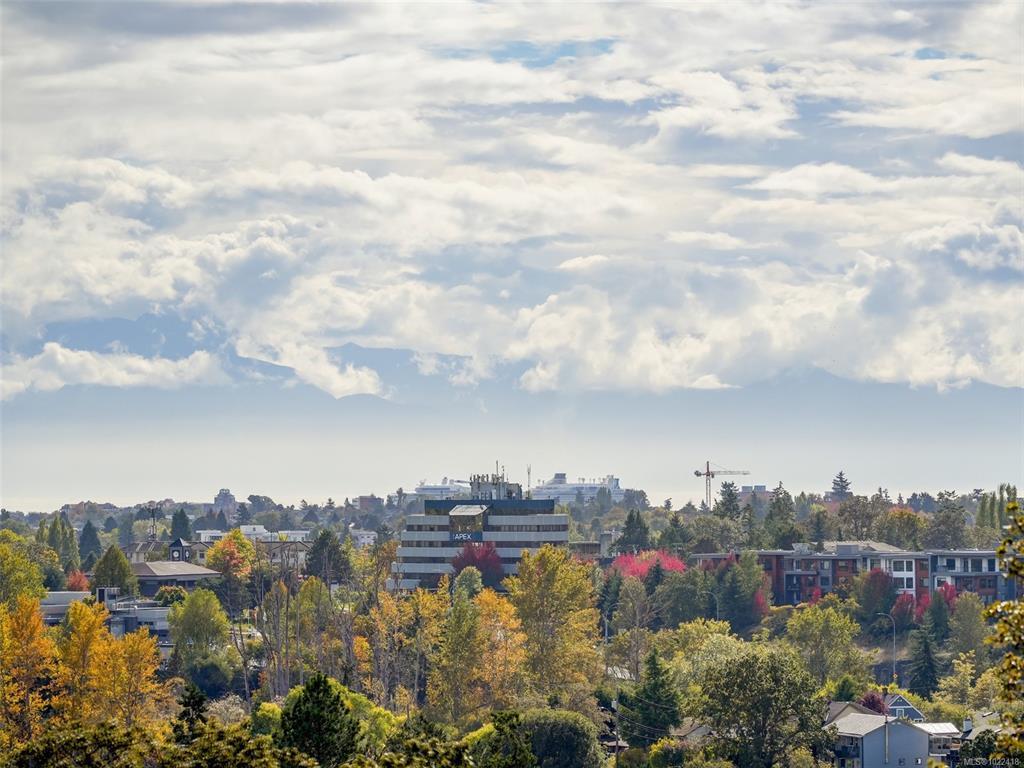 Elevated living with fabulous sunsets! You’ll love this 6th floor west-facing unit with a large balcony featuring City & Sooke Hills views. 9 ft ceilings & a bright open concept give this 2 bd/2bth home a sense of space beyond it's 1135 sq ft floor plan. Design features: wide-plank HW oak floors, recessed lighting & gas FP. Gourmet kitchen w/wood cabinets, quartz tops, gas cook top, stainless appliances, glass tile backsplash & large island will please any chef. Current owner CUSTOM upgrades: motorized HunterDouglas blinds w/privacy sheers, closet organizers, display shelving, f/place refacing, bedroom carpet. Bedrooms are separated for privacy with wrap-around windows. Large primary bedroom features ample closets & lovely ensuite w/walk-in tiled shower, double sinks & heated floors. 2nd bedroom has walk-in closet for extra storage and 4pc bath steps away. 2018 concrete & steel building minimizes sound transfer. Close to amenities, walking trails, Swan Lake & Christmas Hill Sanctuary.