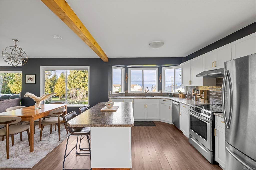 Enjoy panoramic ocean views from this beautifully updated, custom-built home, perfectly positioned on a sunny half-acre in the serene Dashwood community. The main level features 3 bedrooms and 2 bathrooms, including a bright primary suite with its own ensuite and direct access to the covered deck. An open-concept design highlights the natural light and coastal scenery, extending effortlessly to the deck for easy indoor-outdoor living. The lower level offers a walk-out one-bedroom suite complete with its own laundry—an ideal setup for guests, extended family, or potential rental income. Thoughtfully cared for inside and out, the property includes a large, mature garden, plenty of space for RV parking and storage, and a peaceful rural setting just minutes from amenities. Located on the school bus route, only 3 minutes to the elementary school, and just two doors from the community park, this property perfectly combines comfort, privacy, and convenience.