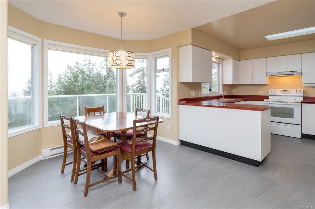Charming Rancher on Over an Acre with Panoramic Ocean Views! New flooring throughout this well-kept 1,700+ sq ft, 3+ bedr, 2-bath rancher. Stunning southern exposure & breathtaking ocean vistas, set on a private, rustic 1+ acre lot in an established, desirable neighbourhood mins from Sooke’s town core. Spacious living with a formal dining area and room for a hutch, and a centrally located kitchen with a breakfast nook. A large family room with a cozy woodstove. Each of these rooms positioned on the ocean-view side of the home and opening onto a full-length sundeck, ideal for entertaining or simply soaking in the views. 3 generously sized bedrooms, including a primary suite with a walk-in closet and ensuite. A functional laundry room with sink provides easy access to the secondary entrance—perfect for busy households or outdoor living. Down, a walk-in crawlspace with its own deck (approx 60’ x 24’ w/11–12’ ceilings) endless potential—ideal for a workshop, hobby space or storage.