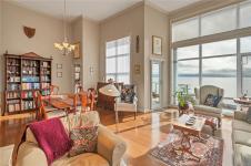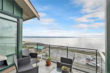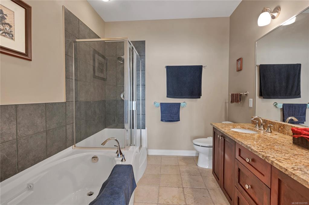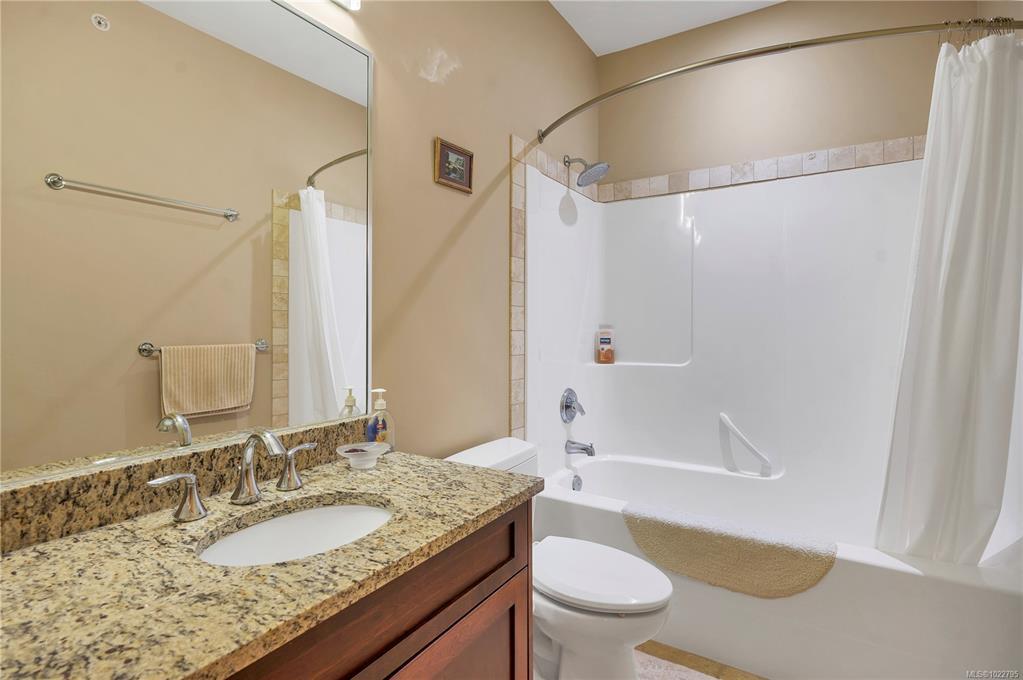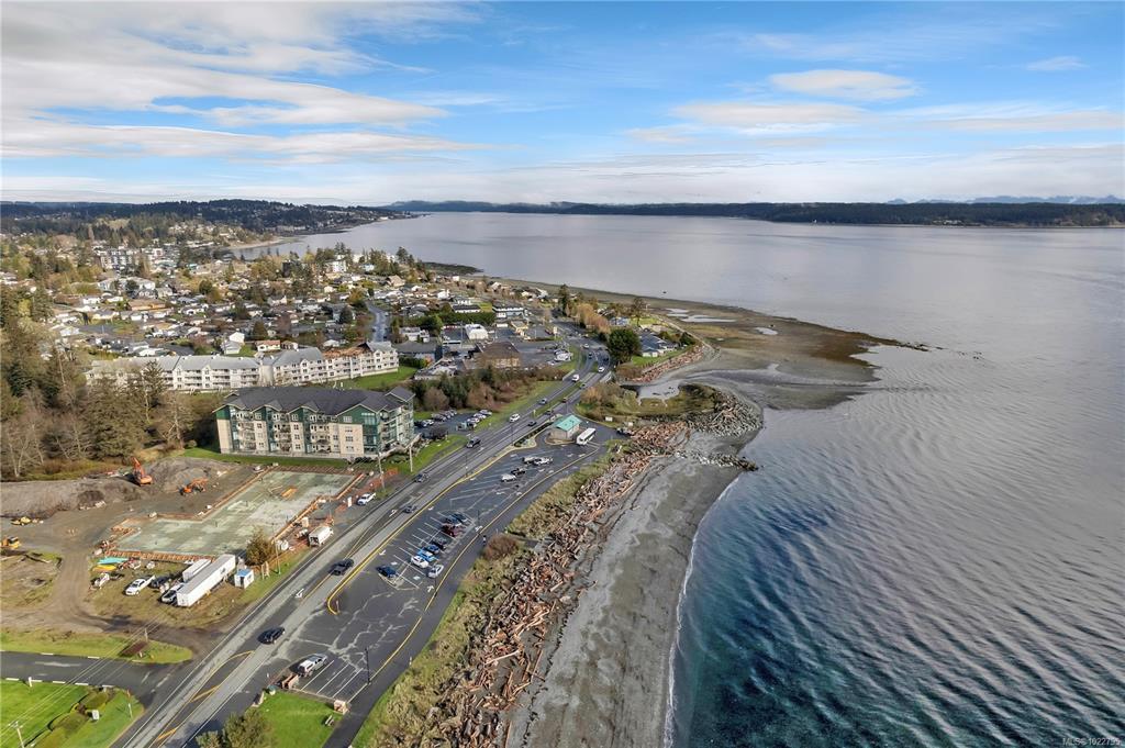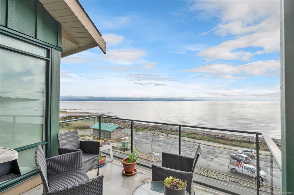 This beautifully appointed 3-bedroom, 2-bathroom condo in the coveted Willows Oceanside complex offers semi oceanfront living with stunning views of the Discovery Islands and passing marine traffic. Floor-to-ceiling windows flood the open-concept space with natural light, while rich hardwood floors, granite countertops, and maple cabinetry add warmth and elegance. The kitchen includes a handy island and flows into the living area anchored by a cozy gas fireplace - perfect for relaxed coastal living.