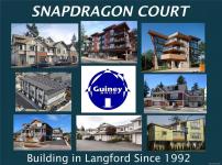 Introducing Snapdragon Court Townhomes, where Modern Elegance and Superior Craftsmanship define everyday living. These thirteen 2-bedroom + den, 2-bathroom homes are perfectly situated near Happy Valley School, Shopping, Transit, Parks and the Galloping Goose trail. Future-focused living with Solar Panels, ICF Concrete Walls, Door-Cams and EV charger readiness. Contemporary design backed by a 2/5/10 New Home Warranty. 9-foot ceilings ,Vaulted 14 foot bedroom ceilings with Expansive windows. Featuring Engineered laminate, Tiles, Roller Blinds, and Custom Kitchens with 6 Appliances. Efficient Heat Pump for year-round comfort. The Beautifully landscaped grounds and generous yards complete the Lifestyle. Snapdragon Court is more than a place to live, it’s a statement of Style, Sustainability and Community. This is a Guiney Bros Project, Building Langford since 1992. Price + GST.