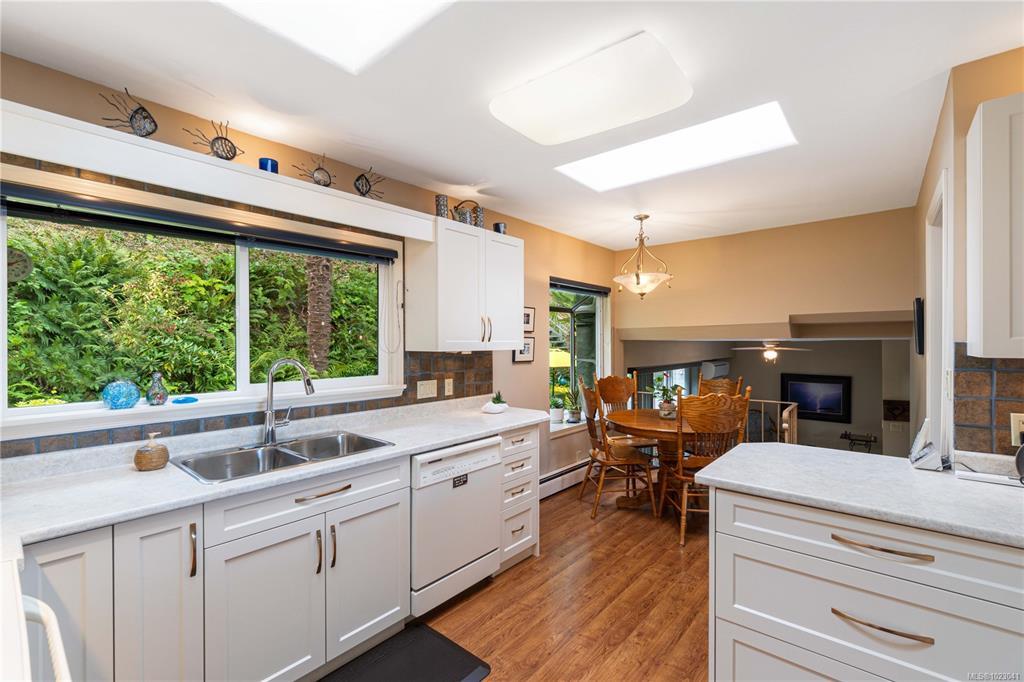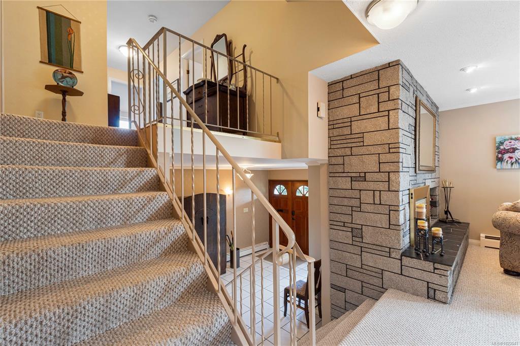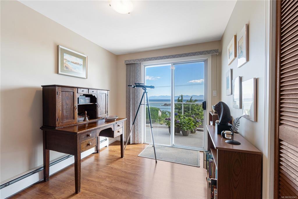 The family home you have been waiting for is now available. This is your opportunity to enjoy views of Shack Island and beyond from most every window! This split level residence means everyone can find their own space, 4 bedrooms plus all 3 bathrooms have in floor heating. It is in immaculate condition and owners have done numerous updates including perimeter drains most windows, ductless heat pumps, kitchen cupboards re surfaced and more plus newly renovated office space. Lower level is perfect for in-laws or as an airbnb with a newer 3pc bath plus its own entrance. The private patio in the backyard is a great spot to end of the day. This location is super for a leisurely stroll to Neck Point and Pipers Parks suitable for all ages, the boat launch is just one block away. Kids at VIU? the bus stops just down the road. New roof just installed, 200amp electrical and updated perimeter drains for your peace of mind. Measurements by Proper Measure buyer to verify if important.
