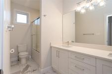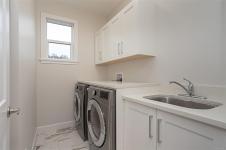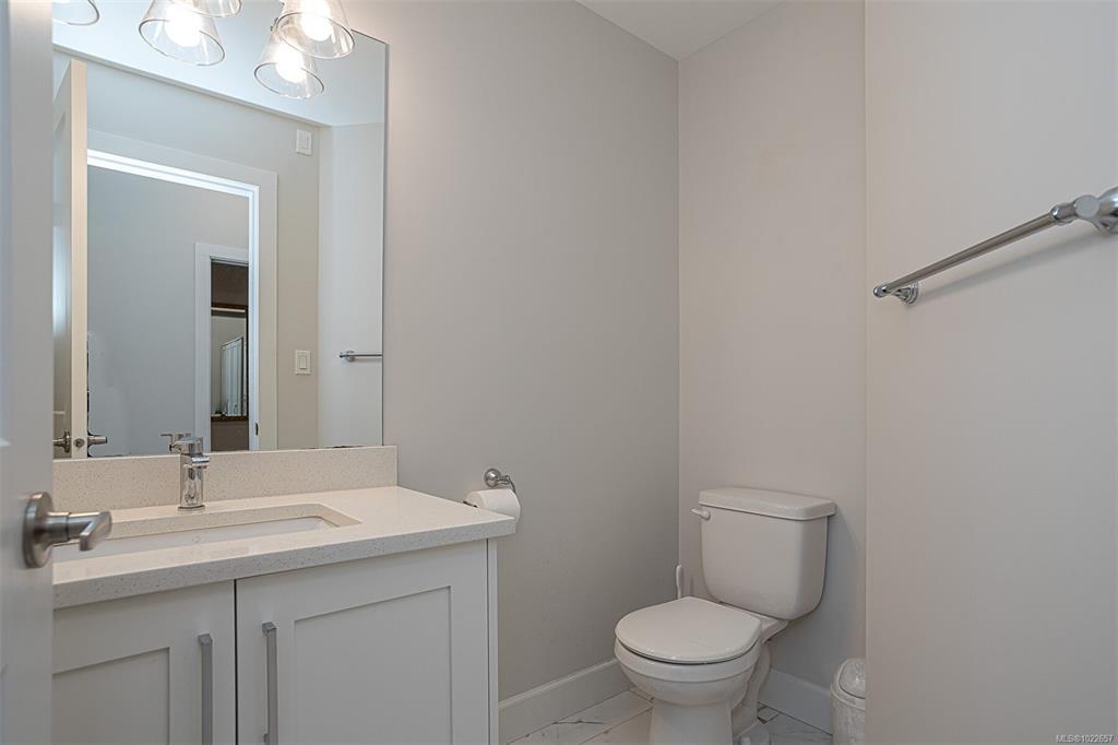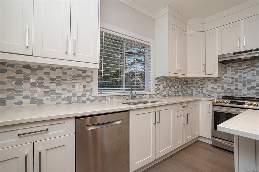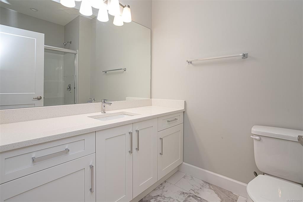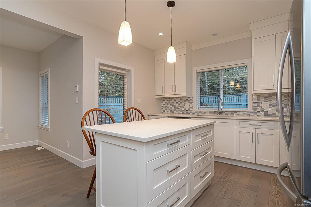 Welcome to 5607 Capstone Place, an elegant home backing onto a forested area with access to Cowichan Valley walking/biking trails. Enjoy a balance of nature and convenience just minutes from schools, shopping, recreation, and amenities. The main floor features a modern kitchen with quartz counters, soft-close cabinetry, SS appliances, an induction stove, and a large island for entertaining. Laminate flooring, 9’ ceilings, large windows with 2” blinds, and a gas fireplace create a bright living space. A main-floor bedroom offers flexibility as a guest room or office, alongside a 2-piece bath and extra storage. Marble tile accents enhance the bathrooms, mud room, and laundry room, while the kitchen opens to private patio garden. Upstairs, the primary bedroom includes a walk-in closet and en-suite, plus two additional bedrooms, a 5-piece main bath, and laundry room with sink and washer/dryer. Additional features include a heat pump, irrigation system, garage, and roughed-in central vac.