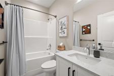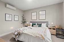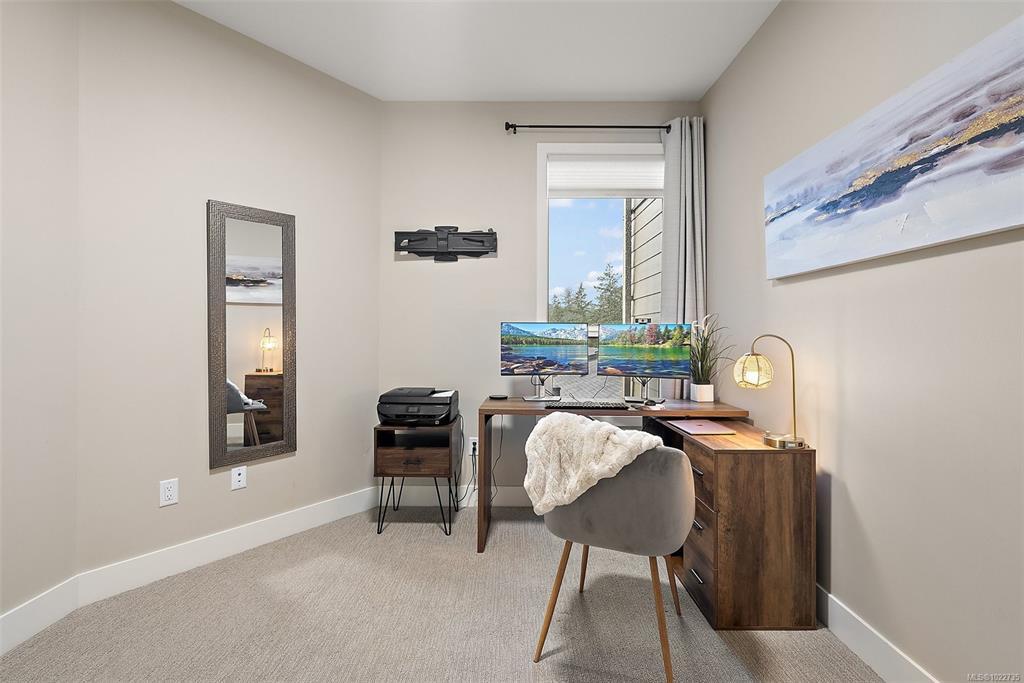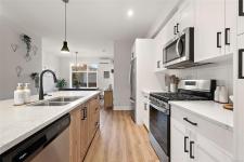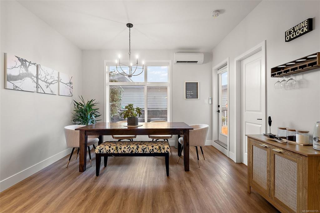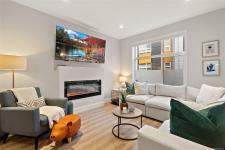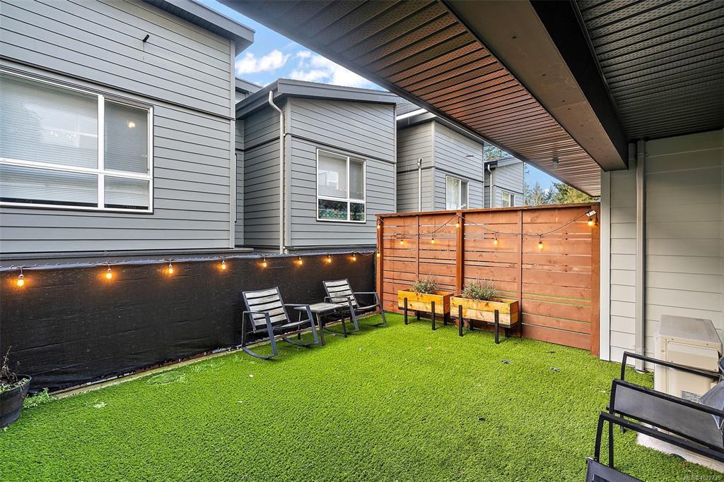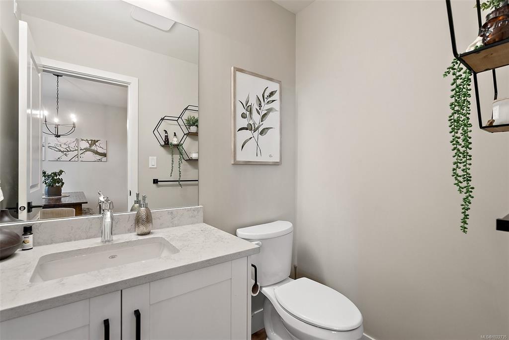 Welcome home to this bright, well-appointed 3-bedroom, 3-bathroom home offering 1,450 sq ft of comfortable living space plus an oversized 532 sq ft garage. The main level features an open layout with 9-ft ceilings, electric fireplace, and a chef-inspired kitchen complete with quartz countertops, stainless steel appliances with gas range, soft-close cabinetry, full-height pantry, tile backsplash, and a large island ideal for everyday living and entertaining. Added comforts include air conditioning, on-demand hot water, and cordless blinds throughout. Upstairs, the primary bedroom offers a walk-in closet and 4-piece ensuite, with two additional bedrooms nearby. Outside, enjoy a sunny south-facing deck and fully fenced yard—perfect for kids, pets, or hosting. Conveniently located near Red Barn Market, Olympic View Golf Course, and the Galloping Goose Trail. Rentals permitted, pets welcome with no weight restrictions, and remaining 2-5-10 home warranty.