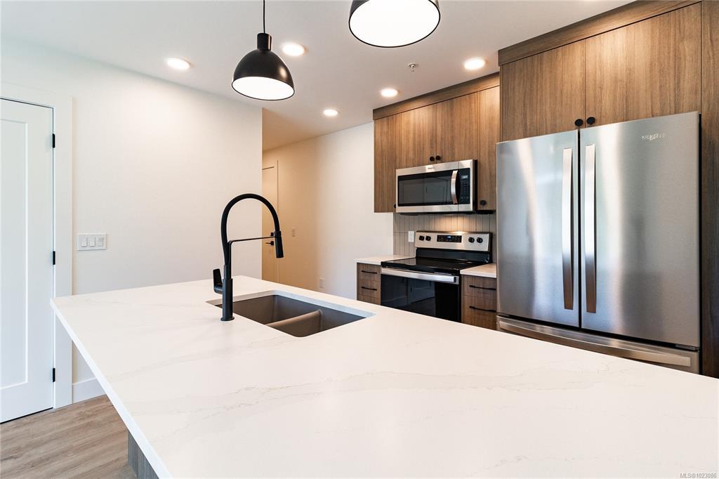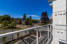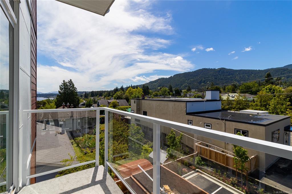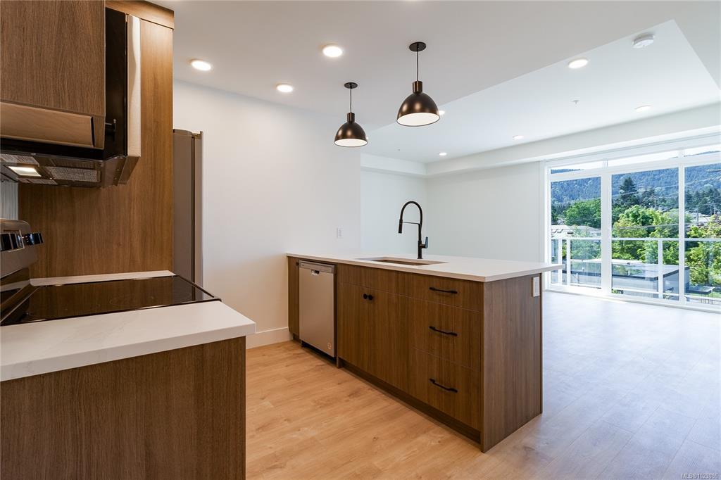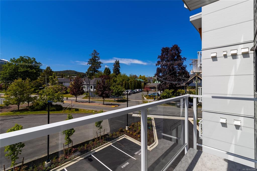 Welcome to Dalby’s on Dogwood, where luxury meets convenience in the heart of Ladysmith, BC. This exclusive boutique residence combines sophisticated design, modern amenities, and a prime central location. Enjoy breathtaking panoramic harbour views that create a stunning backdrop to everyday living. The five-storey building features just 25 thoughtfully designed homes and offers secure parking, an elegant lobby, and a shared rooftop patio. Residents will appreciate lifestyle-focused amenities including bike storage, a dog wash station, and beautifully landscaped grounds. Embrace coastal living with beaches, parks, and shops just minutes away. This 1 bed + den, 2 bath home boasts high-end finishes, in-suite laundry, included appliances, window coverings, and ocean views from your private patio.