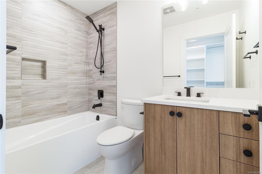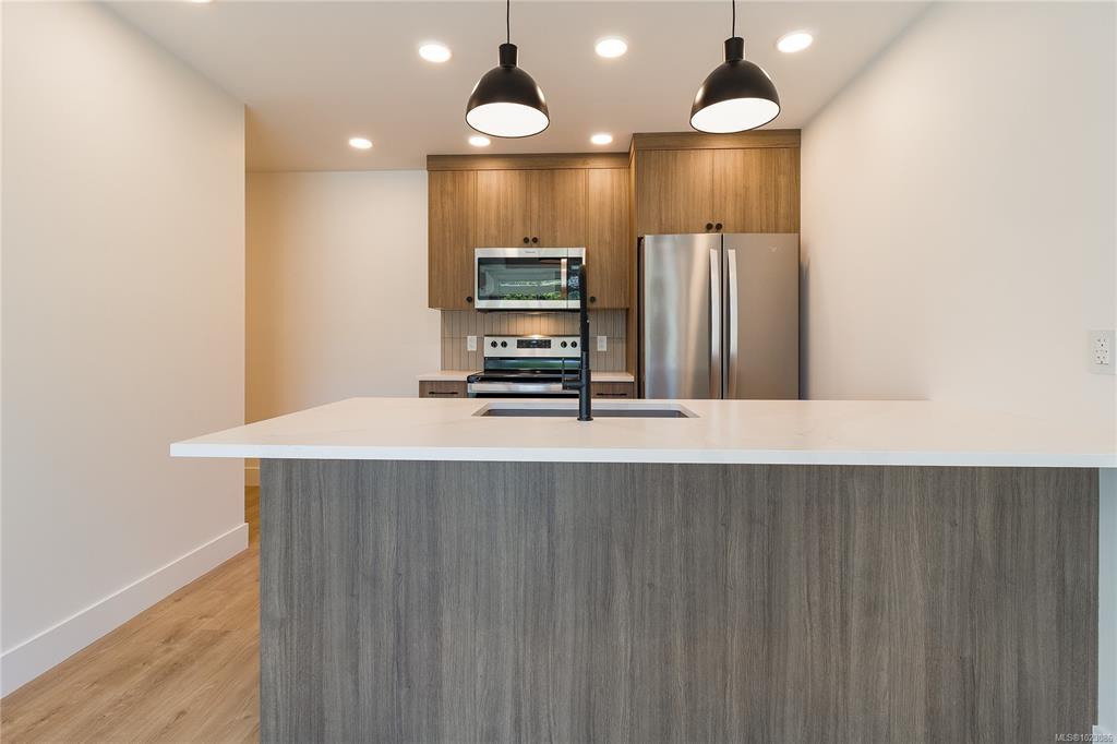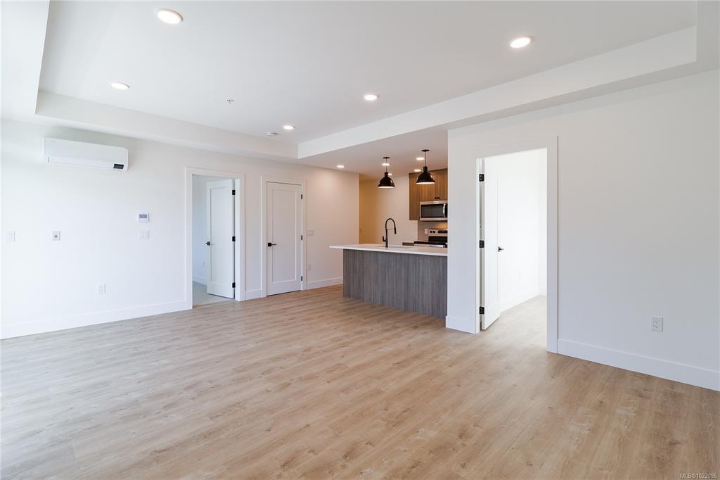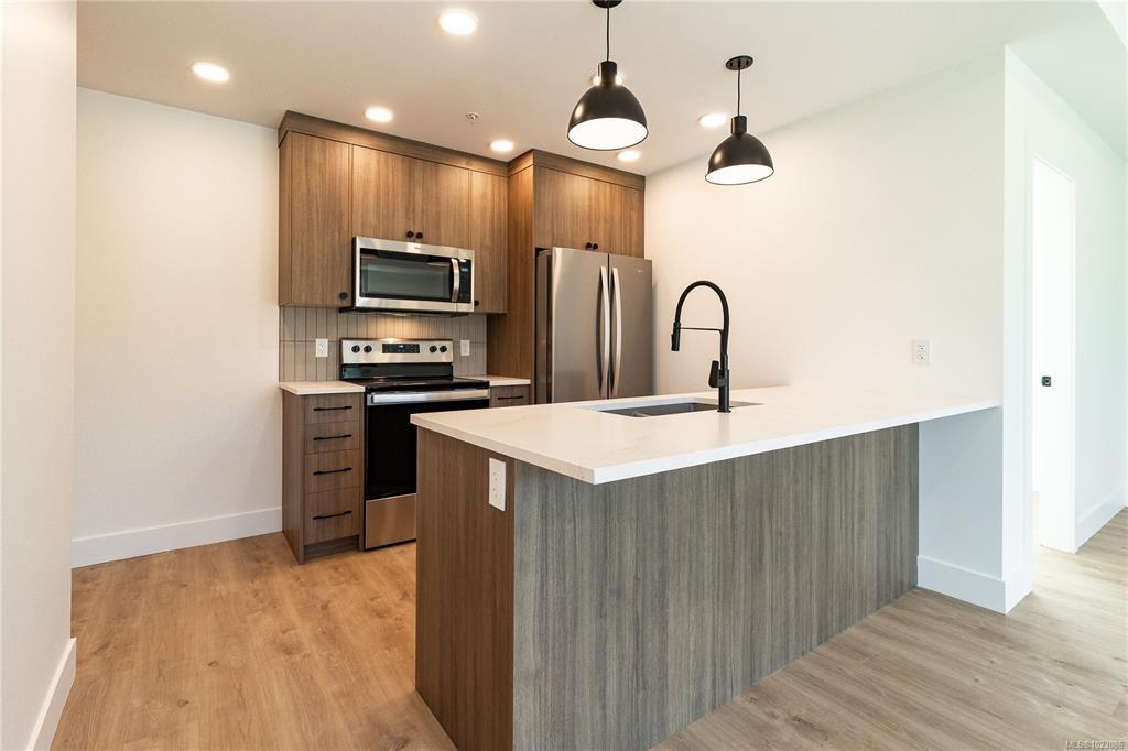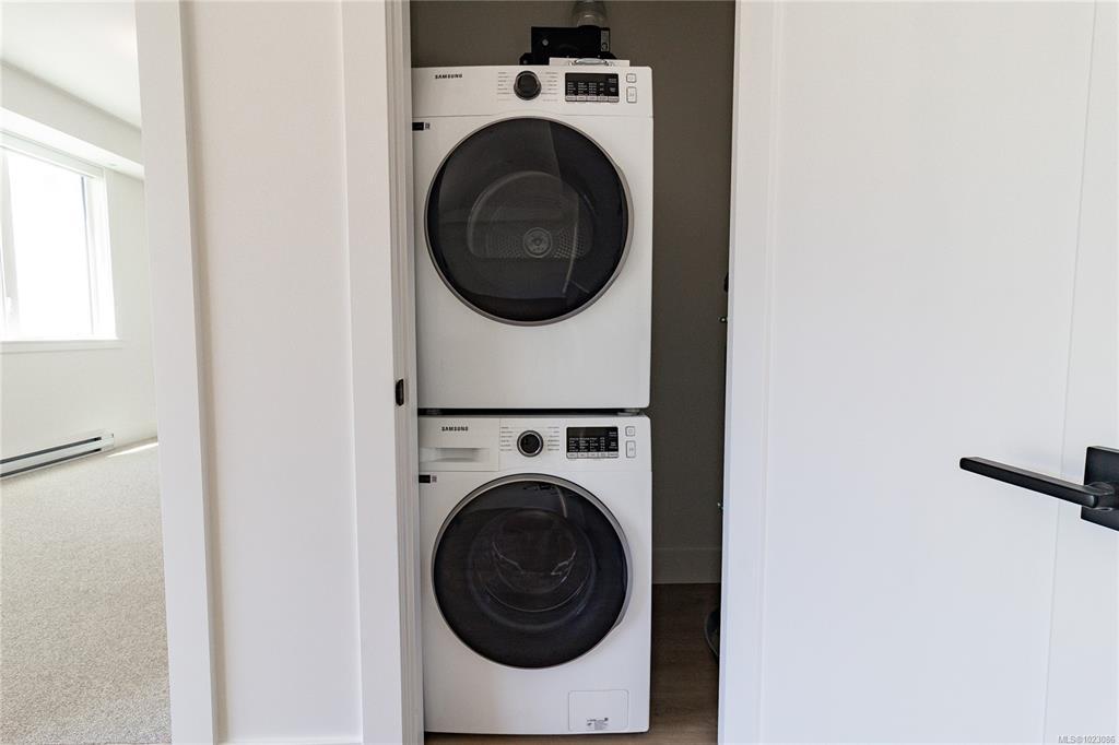 Welcome to Dalby’s on Dogwood, where luxury meets convenience in the heart of Ladysmith, BC. This exclusive boutique residence combines sophisticated design, modern amenities, and a prime central location. Enjoy breathtaking panoramic harbour views that create a stunning backdrop to everyday living. The five-storey building features just 25 thoughtfully designed homes and offers secure parking, an elegant lobby, and a shared rooftop patio. Residents will appreciate lifestyle-focused amenities including bike storage, a dog wash station, and beautifully landscaped grounds. Embrace coastal living with beaches, parks, and shops just minutes away. This 1 bed + den, 2 bath home boasts high-end finishes, in-suite laundry, included appliances, window coverings, and ocean views from your private patio.