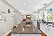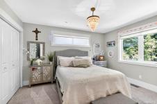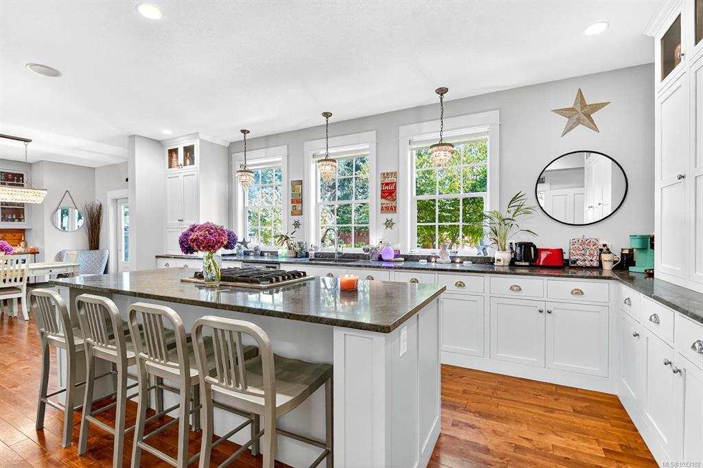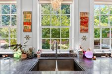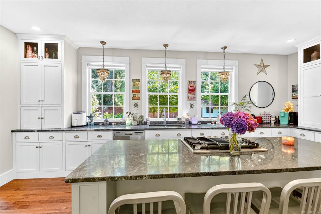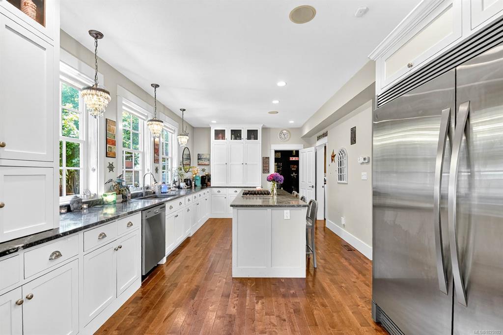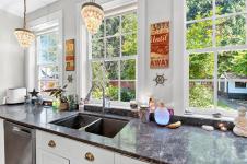 Built in 2015, this residence offers a sophisticated blend of modern design and timeless comfort. The main living area showcases soaring 10ft ceilings, expansive windows, custom built-in cabinets/shelving and a gas fireplace, seamlessly connected to a chef-inspired kitchen finished with striking Tahsis blue marble countertops, a massive fridge, custom bar built-ins, and integrated laundry and recycling systems. A dedicated media room, enhanced with 7.5 surround sound, double sound insulation, and outdoor speakers, creates an elevated entertainment experience. Designer light fixtures and refined finishes add a touch of elegance throughout. Outdoors, the property features a beautifully landscaped yard, complete with irrigation, an outdoor fireplace, and a garden shed. A heat pump, insulated 4-ft crawl space, and efficient systems ensure year-round comfort. Ideally situated close to the river, breweries, and local amenities. This home is a show stopper and must see listing!
