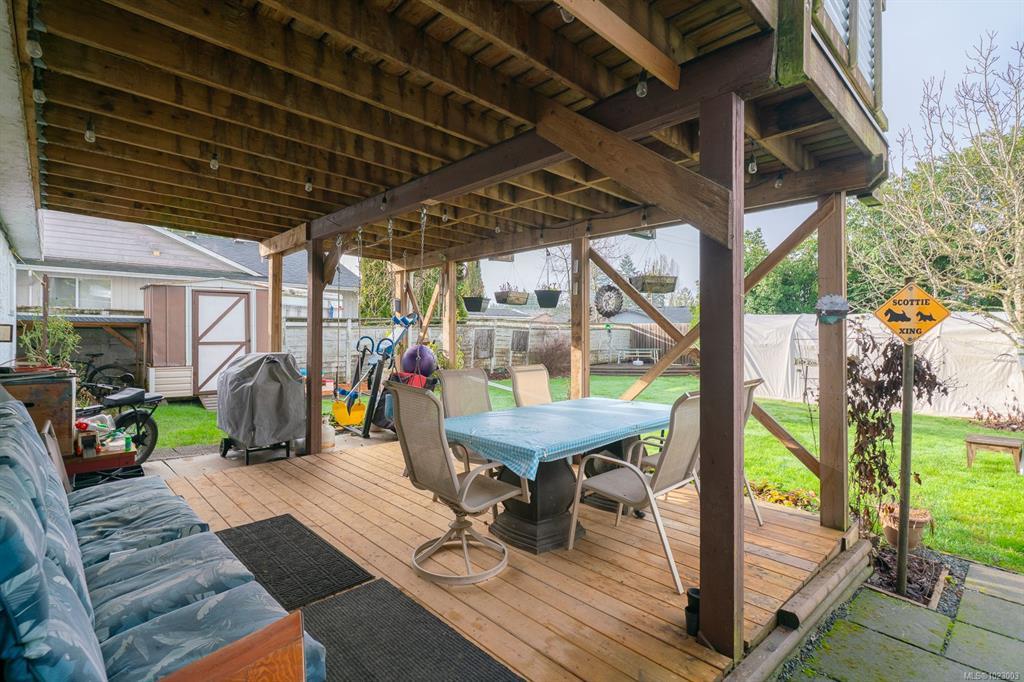 This thoughtfully cared-for home offers a versatile layout with four bedrooms plus a den, two bathrooms, and a self-contained one-bedroom in-law suite—ideal for extended family or added income. Set on a fully fenced 0.19-acre lot, there’s plenty of space for kids, pets, and outdoor living. The bright main level features an updated kitchen with modern finishes and refreshed bathrooms. Comfort is ensured year-round with a heat pump servicing both the main home and suite, plus a cozy wood stove insert for cooler evenings. A large deck extends the living space outdoors, perfect for relaxing or entertaining. Additional highlights include RV parking, parking for up to six vehicles, 200-amp service, and a landscaped, private yard. Located across from a sought-after French Immersion school and minutes to Evans Park, sports fields, and three schools, with Cowichan Commons shopping and the Trans Canada Trail close by—this home offers an ideal blend of comfort, flexibility, and lifestyle.