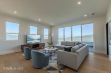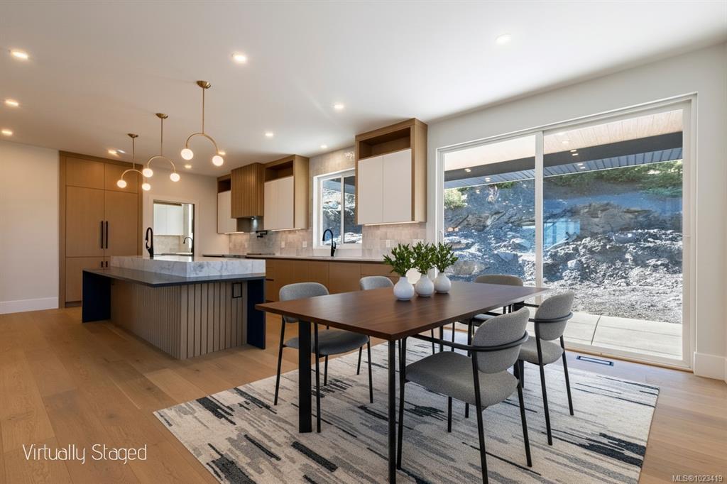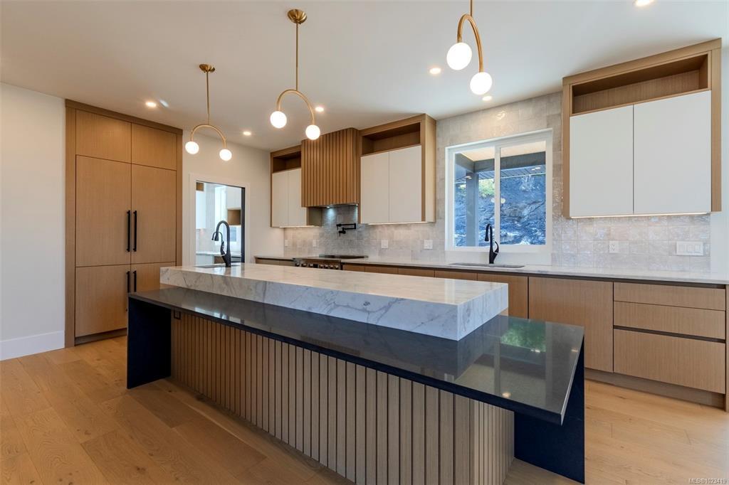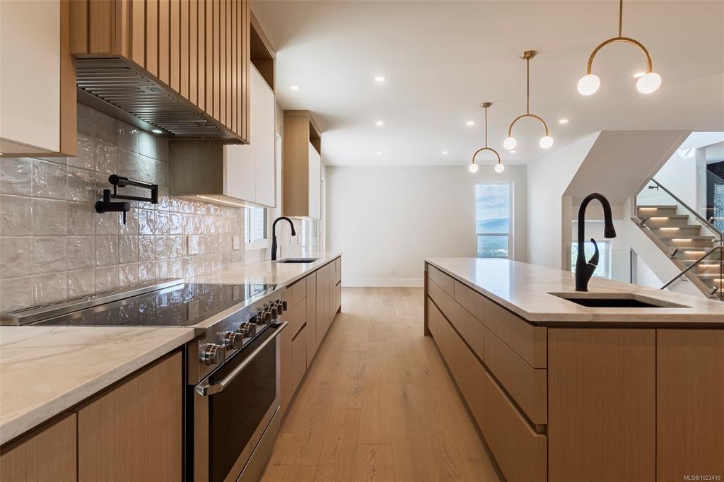 The Sky House—an executive-class residence in Kingsview—is now complete and ready for its first owners. Offering 4,000+ sq. ft. of beautifully finished living space, including a 722 sq. ft. 2-bedroom legal suite, this home blends luxury, function, and income potential. The chef’s kitchen features a walk-in butler’s pantry, waterfall quartz island, Dacor fridge, Electrolux induction range, and integrated cabinetry. It flows seamlessly to the dining and living areas, with herringbone hardwood, gas fireplace, and custom built-ins. The primary suite offers a spa-inspired 5-piece ensuite with glass shower, rain head, smart toilet, and walk-in closet. Upstairs, three bedrooms (two with walk-ins, one ensuite) surround a central lounge with access to a 12’x34’ deck and striking cantilevered roof. The lower level boasts a media/office with wet bar, heated tile floors, 3-piece bath, and garage access. With extraordinary views and refined finishes, The Sky House is a rare Kingsview opportunity.