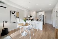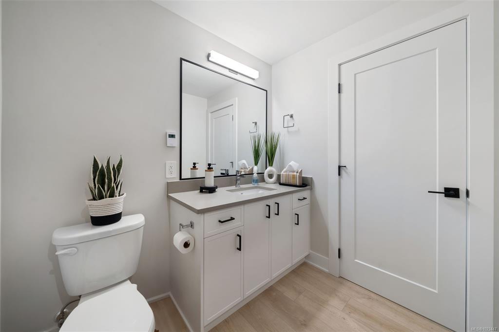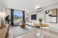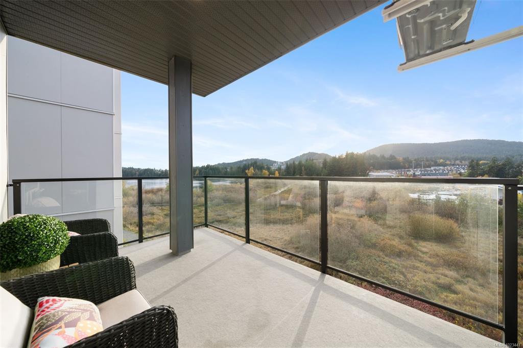 GST included for a limited time. Enjoy Lake views on the extended patio of this private end corner unit. Move in right away and enjoy new construction with air conditioning. Poised on the shores of Langford Lake, all homes at Trailside at the Lake come equipped with all the amenities for modern living. Bright and airy, including large windows to showcase the views, 9 ft ceilings, laminate flooring, spacious kitchens with quartz counters and a Whirlpool appliance package, window blinds and screens, as well as one (EV ready) parking space. Building includes cardio space, weight room, yoga space, lounge, & work from home office space. Just steps to the Ed Nixon trail and Langford Lake for outdoor adventures. Just a short walk to YMCA, Eagle Ridge and City Center activity complex, as well as many amenities.