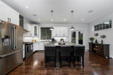 Built for precision, low-maintenance living! Executive comfort, smart tech & car-enthusiast appeal. Excellent privacy, minimal yard work & fully outfitted 2-car garage with professional hoist, Racedeck flooring, 45k BTU gas heater, integrated air line, extensive cabinetry, workbenches, ceiling hose reel, retractable power plug/light. Ideal for mechanics, hobbyists, or premium vehicle storage. Expansive 6 bed, 3 bath home. Flex room suitable as 7th bed, gym, or office. Interior features: smart home tech, multi-zone surround sound, on-demand hot water & efficient heat pump. Gourmet kitchen: granite counters, tile backsplash, upgraded lighting. Hardwood & heated tile floors throughout. Walk-out lower level features a private 2-bed suite w/ separate entrance, laundry & hydro monitoring. Ideal for in-laws / mortgage helper. Outdoor living: private deck with hot tub, low-maintenance landscaping & tranquil pond. Close to trails, lakes, golf, rec centers & amenities. O/H Sun Jan 25 2–4 pm.