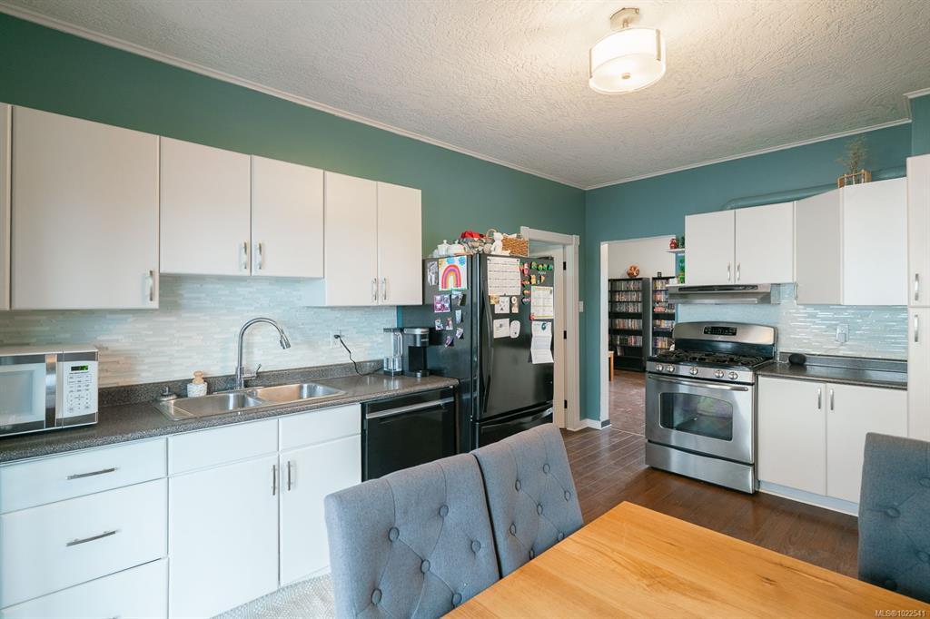 Welcome to your charming new home in the heart of downtown Ladysmith! This updated property blends modern comforts with an unbeatable "walk-to-everything" lifestyle. Stroll to the local bakery, enjoy nearby restaurants, or walk to the marina and beach. The bright, modern kitchen has French doors that open onto a spacious back deck for summer barbecues and seasonal ocean views. Recent updates include a newer roof, an efficient heat pump, and vinyl windows.