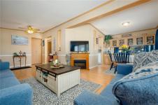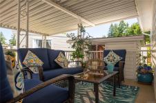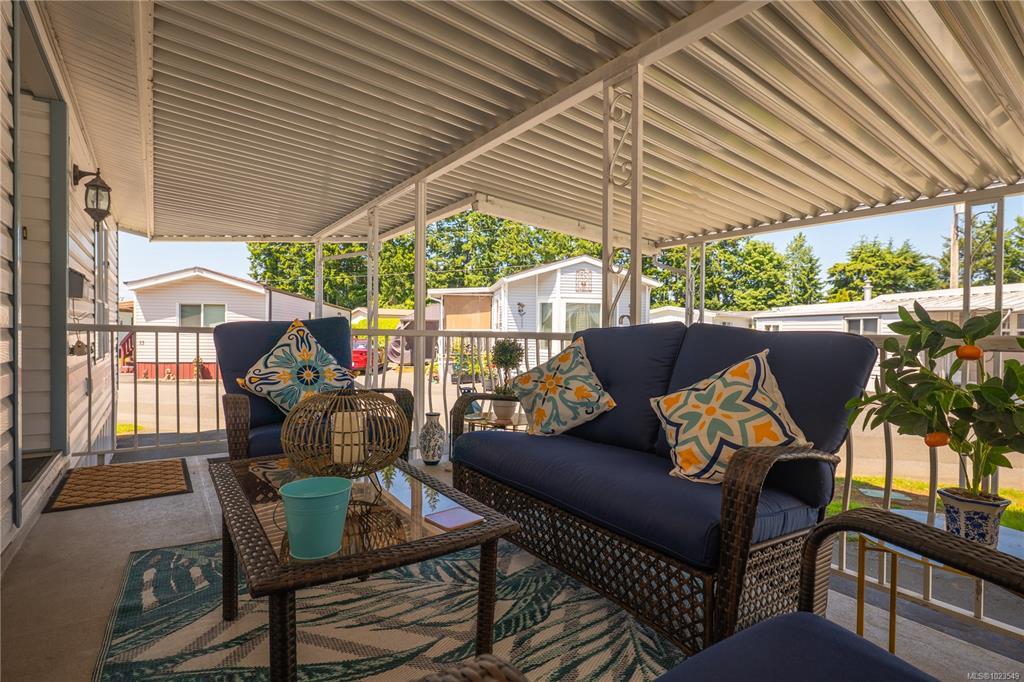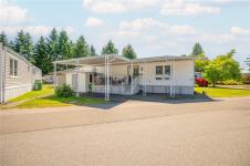 Walk everywhere, live comfortably, and enjoy a relaxed 55+ lifestyle. This well-maintained 2-bedroom, 2-bath manufactured home is perfectly positioned just steps from Superstore, Starbucks, shopping, and daily essentials, with transit right outside the park. Inside, the home feels bright and welcoming with a sunny kitchen, comfortable living spaces, and a practical layout designed for easy living. A covered balcony provides a sheltered spot to enjoy the outdoors, while the large green space behind the home offers a peaceful, open backdrop to view the mountains. Additional features include ample covered parking, a storage shed, and access to a clubhouse for social gatherings. Priced well below assessed value, this is a fantastic opportunity to enjoy low-maintenance living in an exceptional, walkable location.