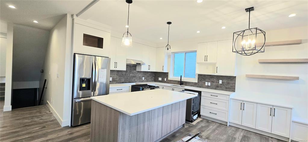 Enjoy dynamic ocean views of Coastal Mountains, ferries, & seasonal cruise ships from your main floor balcony & master bedroom balcony in this beautiful brand-new ready to move in home. Designed for modern family living, this 5-bedroom, 5-bathroom residence features a bright open layout with electric fireplace, quartz countertops, beautiful backsplash, sleek vinyl flooring, & stylish modern lighting throughout. Main level offers a spacious kitchen, dining area, family room, & a convenient full bathroom. Upstairs are 3 generous bedrooms, including a luxurious primary suite & 2nd full bathroom. A dedicated media room adds extra versatility for entertainment or relaxation with a bar & 2 pc bathroom for convenience plus a 2-bedroom suite-ready space with a full bath, ideal for extra income or extended family. Perfect for busy families seeking a low-maintenance, contemporary home with incredible views. GST is applicable; all measurements are approximate & should be verified if important.
