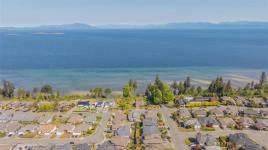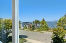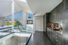 Gorgeous and contemporary, this one-of-a-kind executive home in semi waterfront off North Nanaimo—designed by Chow Low Hammond Architects and built by Windley Construction—offers exceptional detail and harmonious design throughout. The striking entry and 2-storey central atrium, with oversized skylights, flood the interior with natural light, embodying a concept of energy, balance, and well-being. The open main floor w/ 2bd & 2bthrm features custom built-in cabinetry, a gourmet kitchen w/ quartz countertops, premium Fisher & Paykel appliances, and a secondary pantry kitchen. The lower level includes a library/media room, personal gym, and spa retreat with a Japanese soaker tub and infrared sauna 2/ full bath. Heated polished concrete floors, a forced air heat pump, on-demand hot water with return plumbing, and ample skylights add comfort and efficiency. Enjoy spectacular sunsets over the Winchelsea Islands from the oceanview front deck or entertain on the sunny back patio.