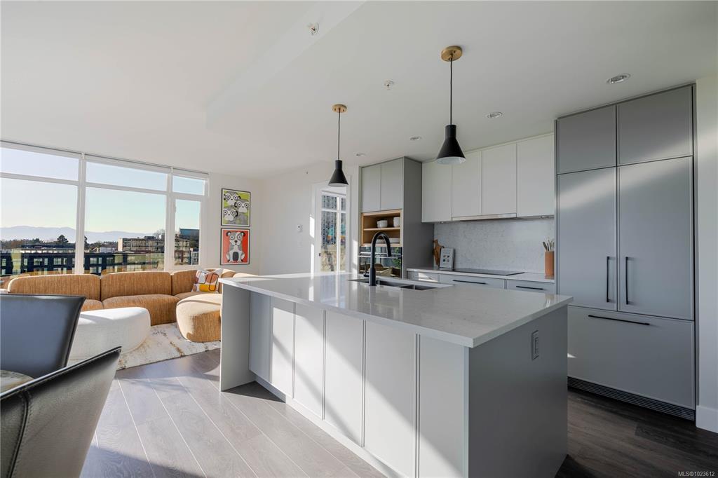 Welcome to this stunning southeast corner suite in The Legato-a spacious 2-bedroom, 2-bathroom home offering 971 sq.ft. of modern living with breathtaking mountain, ocean, and city views. Flooded with natural light through floor-to-ceiling windows, this open-concept layout features high-end appliances by Fisher & Paykel and Miele, custom-built cabinets, an integrated fridge & dishwasher, high-grade quartz countertops & backsplash, & an oversized island with storage. The primary bedroom has a walk-through closet leading to a spa-like ensuite with extra storage in the custom millwork and double sink. A second bedroom, tucked privately away, is steps from a full bath with a deep soaker tub. Built in 2018, The Legato includes secured car and bike parking plus dedicated storage, a gym, social lounge, and outdoor courtyard with communal BBQ. With no rental restrictions and pet-friendly policies, this home offers style, comfort, and flexibility in the heart of the city.