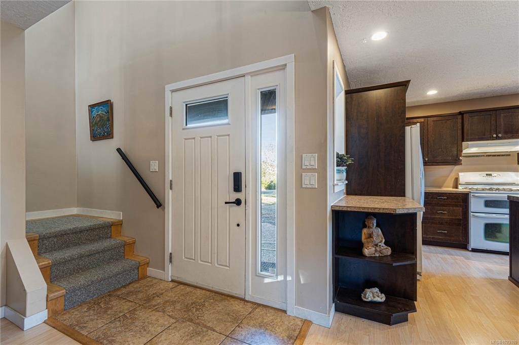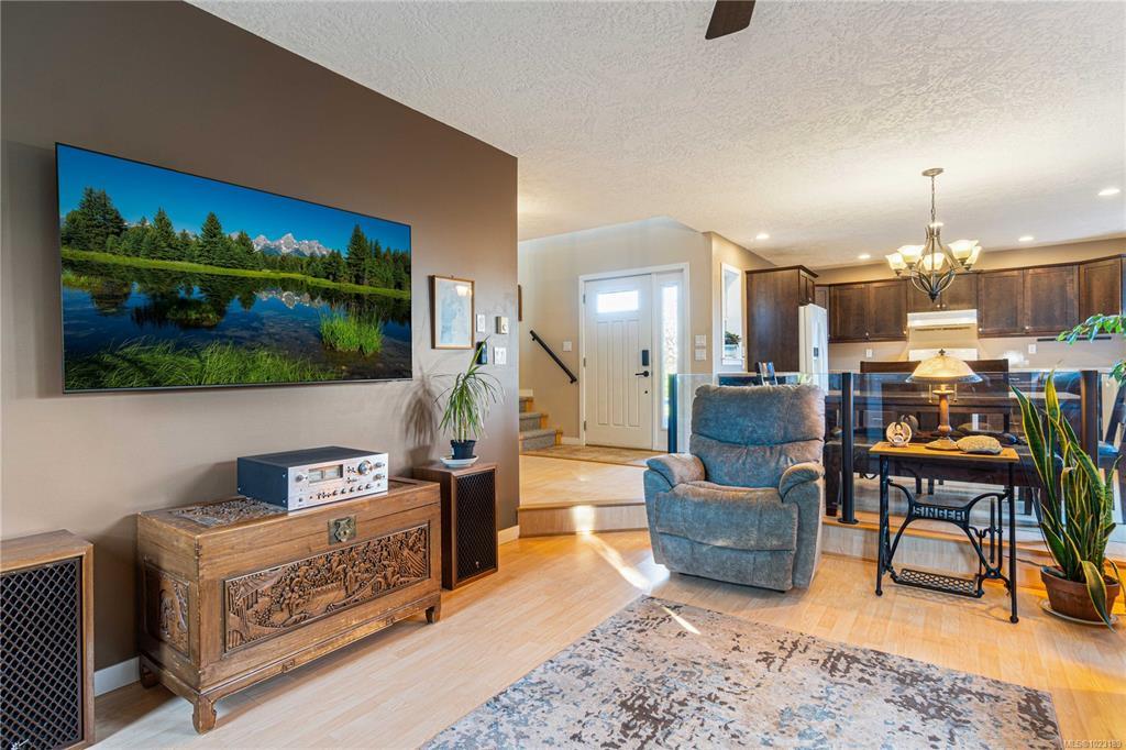 Income, views, and privacy—this one delivers it all. This elevated country home comes with a valuable bonus: a self-contained bachelor suite.. Set on a quarter-acre in LQRV, the property enjoys distant ocean views, mainland mountain backdrops, and sweeping valley outlooks that create a true sense of escape, just 20 minutes from town at a price point that simply cannot be replicated closer in. The main floor features an open-concept layout designed for everyday living and entertaining, with a bright kitchen incl a centre island, and a gas range. Oversized windows throughout flood the space with natural light and frame the ever-changing landscape. Upstairs, all three bedrooms are thoughtfully positioned to capture outstanding views, each with walk-in closets, including a spacious primary with an oversized ensuite tub. Additional features include on-demand hot water, a crawl space foundation, and a fully fenced, low-maintenance yard with garden house. (Suite rented for $1200).
