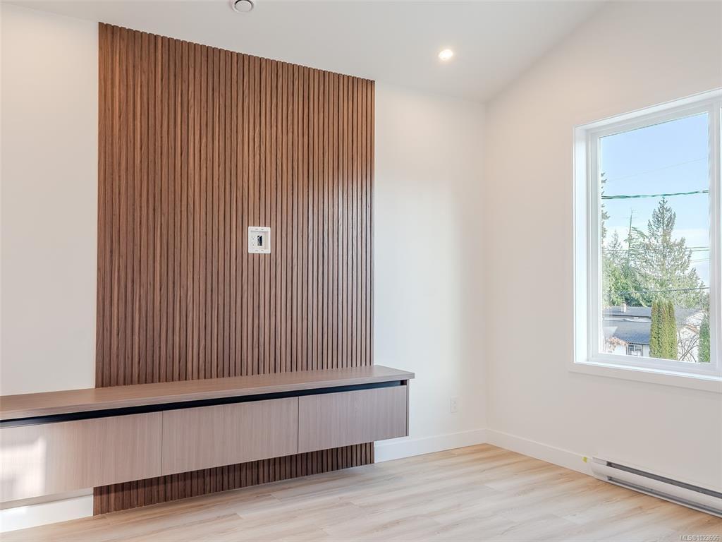 Brand new and stunning, move-in-ready half duplex with a LEGAL SUITE in the highly sought-after Chase River neighbourhood. This thoughtfully designed 1,967 sq ft home delivers modern comfort and flexibility. The main level features 2 bedrooms plus a den/flex room (with closet), 2 bathrooms, 9-ft ceilings, quartz countertops, stainless steel appliances, and an energy-efficient heat pump providing both heating and air conditioning. Downstairs, a fully legal 2-bedroom suite with private entrance (and an AC unit!) is ideal for rental income or extended family. Additional highlights include an oversized garage, fenced and landscaped yard, built-in fire sprinklers, quality appliance package, and the peace of mind of a 2-5-10 New Home Warranty. Quiet street location close to Chase River Elementary, parks, trails, and everyday amenities. Must be seen to be appreciated! Price plus GST. No Property Transfer Tax for qualified buyers. Measurements from plans; verify if important.