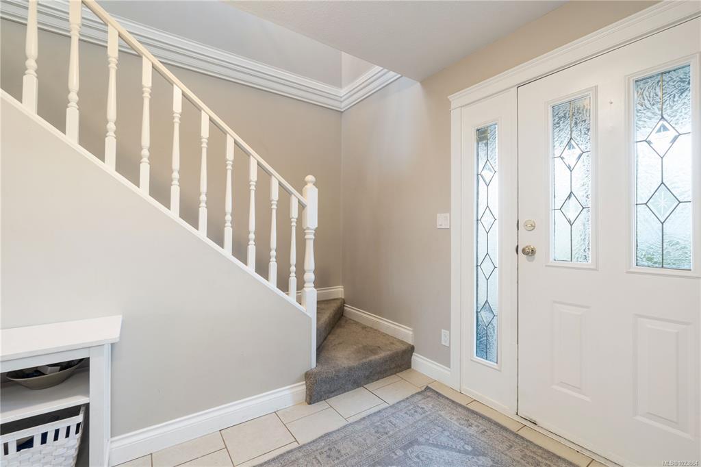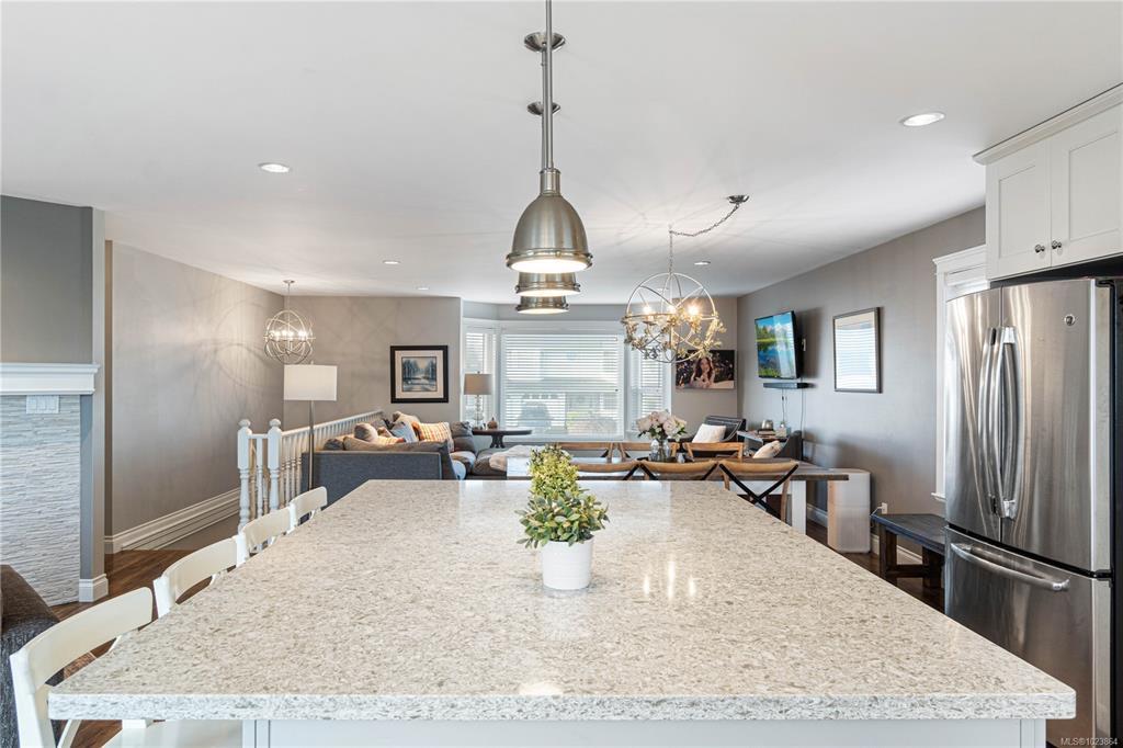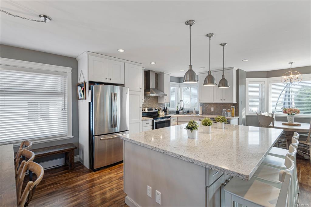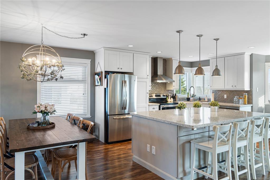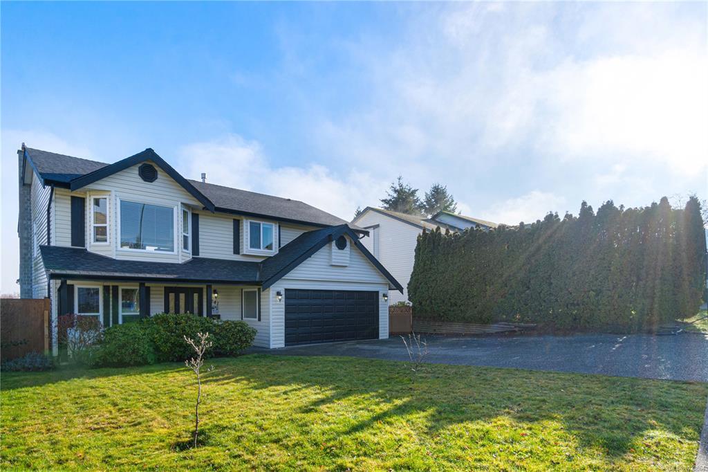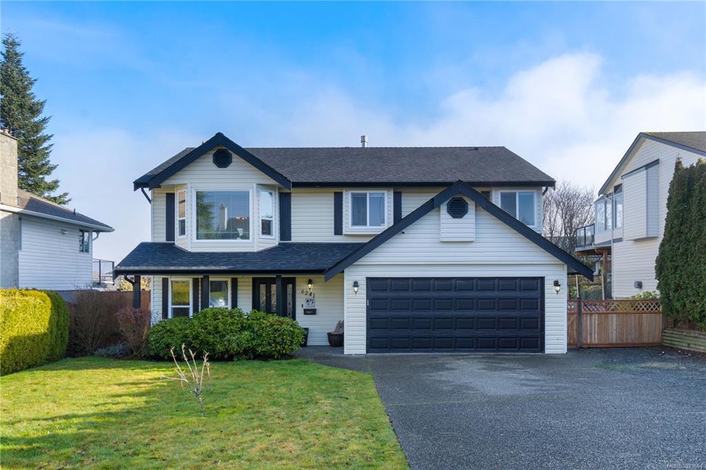 Bright and well-maintained 5-bedroom, 3-bathroom home offering 2,566 sq ft of functional living space on a 7,030 sq ft lot in a desirable North Nanaimo neighbourhood. Ground-level entry with main living up provides an excellent family-friendly layout and strong natural light throughout. The kitchen is well designed for everyday use and hosting, featuring an extra-large island, bar seating and an eating nook flooded with natural light. Two gas fireplaces deliver efficient heating and added comfort on both levels. Updates have been completed throughout the home, enhancing everyday livability. A sun-filled deck extends the main living area and offers ideal outdoor space for daily use and entertaining. Exceptional parking options include a double garage, large driveway, street parking, and dedicated RV parking. Located on a quiet residential street close to schools, shopping, parks, and all North Nanaimo amenities. All measurements are approx and must be verified if important.